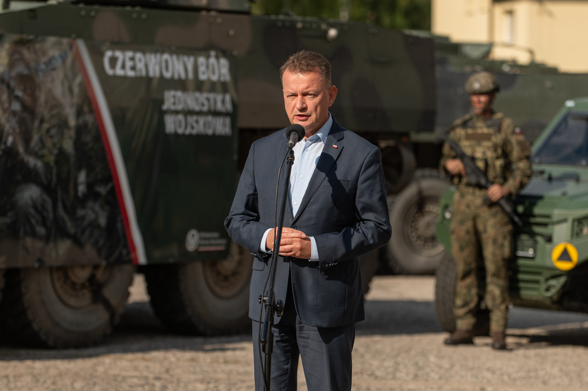 - Znajdujemy się w Czerwonym Borze. To kiedyś był poligon. Dziś wojsko przejmuje ten poligon na stałe, na stan dywizji. W tym miejscu będzie ośrodek szkoleniowy, który będzie służył brygadzie wojsk pancernych, wchodzącej w skład tej dywizji. Brygada będzie wyposażona w czołgi K2, będzie wyposażona także w armatohaubice z rodziny K9/KRAB, będzie także wyposażona w polski produkt – w bojowe wozy piechoty Borsuk. W Czerwonym Borze jest już wojsko, są żołnierze Wojska Polskiego - powiedział Mariusz Błaszczak po odprawie z kadrą dowódczą nowo tworzonej w Wojsku Polskim dywizji.