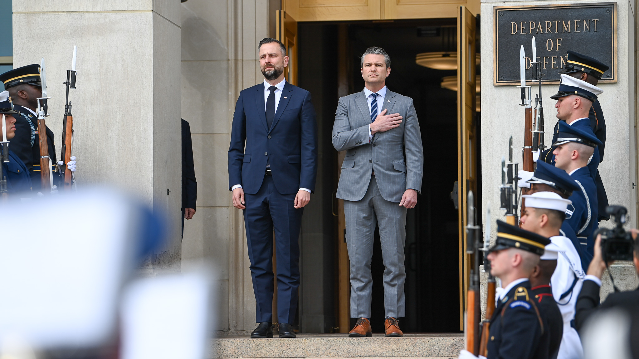 - Jesteśmy z panem ministrem Pawłem Zalewskim. Jesteśmy bezpośrednio po spotkaniu z sekretarzem obrony Pete’m Hegseth’em i całym jego zespołem – bo to nie tylko on, ale jego dwóch zastępców, szef Połączonych Sztabów, najważniejsi dowódcy amerykańscy. Takiego poziomu wizyty rzadko można znaleźć w historii relacji z innymi partnerami. (…) Po raz kolejny usłyszeliśmy podziękowania dla polskich żołnierzy. Chciałbym to z tego miejsca, z Waszyngtonu, przekazać wszystkim polskim żołnierzom, którzy wspólnie z amerykańskimi braćmi, z amerykańskimi żołnierzami, bronią naszej niepodległości, naszej suwerenności, naszych wartości, naszego bycia w świecie Zachodu. Przekazuję najlepsze pozdrowienia i wyrazy wielkiego uszanowania od sekretarza obrony Stanów Zjednoczonych. Docenia wszystko to, co polscy żołnierze robią dla sojuszu, dla partnerstwa amerykańsko-polskiego