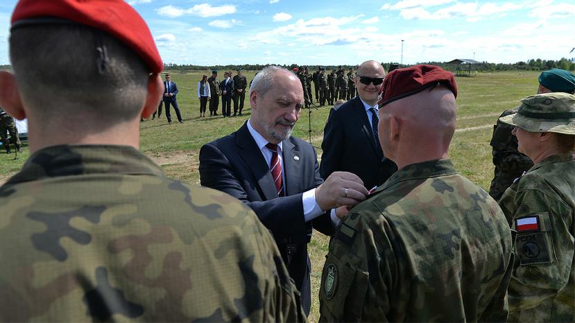 - Nie ma nieomal takiego miejsca na świecie, gdzie żołnierz polski nie byłby wysyłany po to, żeby tam walczyć w sprawach związanych z obroną niepodległości, demokracji, pokoju - podkreślał w wystąpieniu minister Antoni Macierewicz.