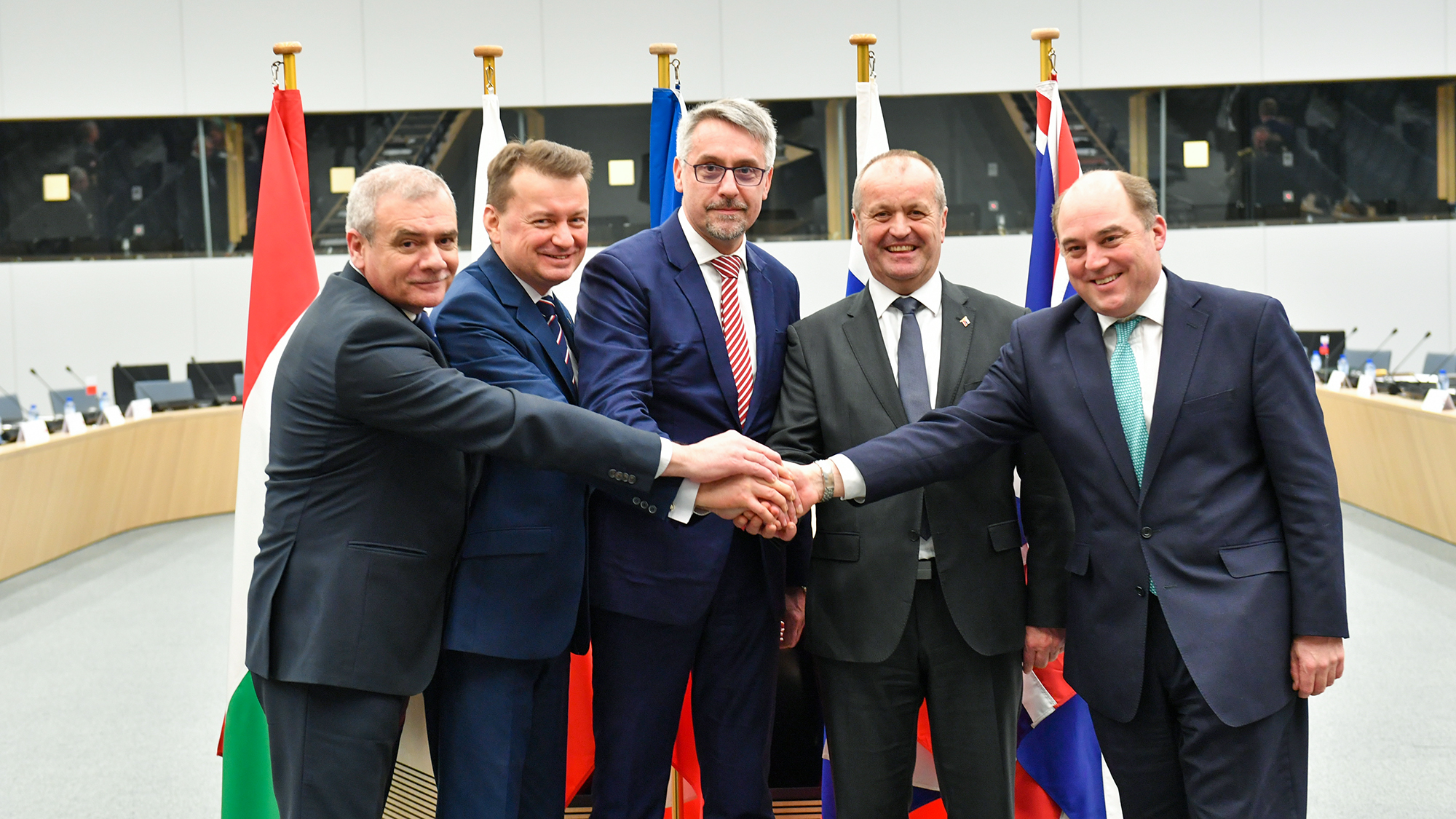 Szef polskiego resortu obrony uczestniczył także w spotkaniu ministrów obrony Grupy Wyszehradzkiej (V4) i Wielkiej Brytanii, podczas którego poruszono kwestię współpracy po opuszczeniu przez Wielką Brytanię Unii Europejskiej. - Usłyszeliśmy zapewnienie, że będziemy pracować na rzecz zacieśnienia współpracy pomiędzy Wielką Brytanią a Grupą V4. (…) Rozmawialiśmy, jak te relacje utrzymać i w przyszłości wzmacniać – poinformował szef MON.