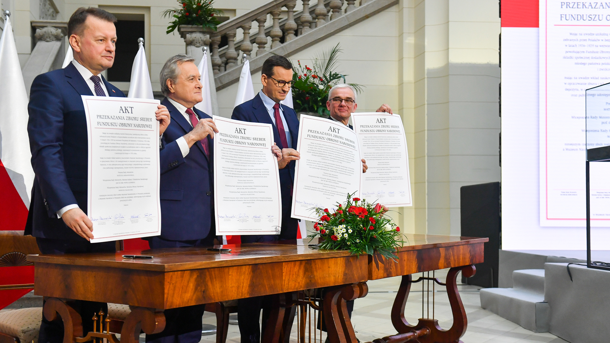 „Fundusz Obrony Narodowej jest częścią tradycji, historii i ofiarności, a więc patriotyzmu naszych przodków. Część srebra Funduszu została dziś formalnie przekazana do Muzeum Narodowego w Poznaniu. Pomyślmy, ile wyrzeczeń niosła z sobą ta akcja. Ile nadziei pokładano właśnie w tym, że przekazywano właśnie to, co było cennego na rzecz Fundusz Obrony Narodowej, tak żeby obronić Polskę przed napaścią. Spodziewano się tej napaści. Może w mniejszym stopniu spodziewano się tego, co wielokrotnie było przekleństwem naszym, a więc porozumienia Berlina z Moskwą, to jest paktu Ribbentrop-Mołotow. Porozumienia ponad naszymi głowami naszych sąsiadów zawsze kończyły się źle” - powiedział Mariusz Błaszczak, wicepremier-minister obrony narodowej w Poznaniu.