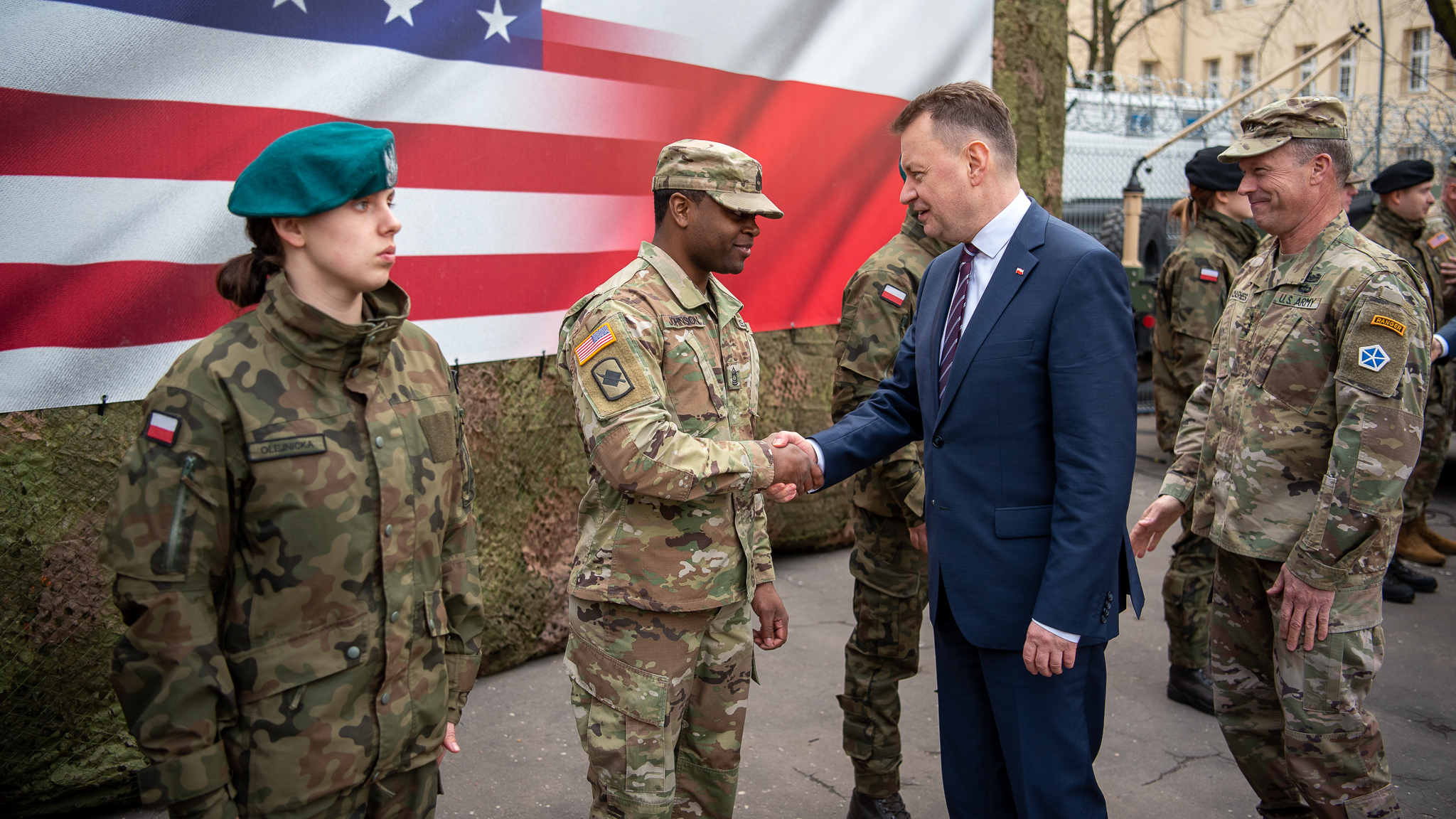 „Jesteśmy dumni z deklaracji pana prezydenta Bidena dotyczącej stałej obecności wojsk USA w Polsce. Zabiegaliśmy o to przez lata, o to słowo „permanent” i właśnie ono stało się faktem. Od dziś rozpoczyna swoją działalność garnizon w Poznaniu. Działa już wysunięte Dowództwo V Korpusu U.S. Army, a więc to z Polski dowodzone są siły lądowe Stanów Zjednoczonych na wschodniej flance NATO. Nasi żołnierze ćwiczą ze sobą. Niedaleko od Poznania, w Biedrusku jest Abrams Academy - akademia szkoląca polskich czołgistów do służby na czołgach Abrams, które już w tym roku trafią do Wojska Polskiego. I to są właśnie te dobre informacje dotyczące bezpieczeństwa Polski i bezpieczeństwa wschodniej flanki NATO" - powiedział wicepremier Mariusz Błaszczak podczas uroczystości ustanowienia U.S. Army Garrison Poland.
