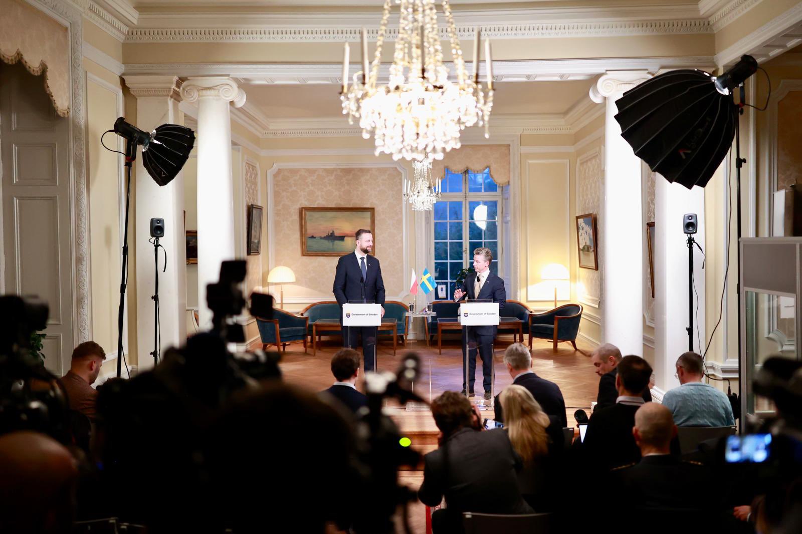 - Współpraca Polski i Szwecji oraz pomoc dla Ukrainy to kwestia, która połączyła w ostatnich latach Polskę i Szwecję. Donacje, sprzęt, szkolenie — o tym wszystkim mówiliśmy dzisiaj podczas naszego spotkania. Jesteśmy gotowi do dalszej pomocy dla Ukrainy. Nic o Ukrainie bez Ukrainy. Wszystkie dyskusje, które prowadzimy, polityczne, zawsze uwzględniają podmiotowość państwa ukraińskiego, jego niezależność i niepodległość. Bardzo ważne jest, żeby dobrze przygotowywać się na najtrudniejsze scenariusze. To można zrobić tylko koordynując wszystkie działania