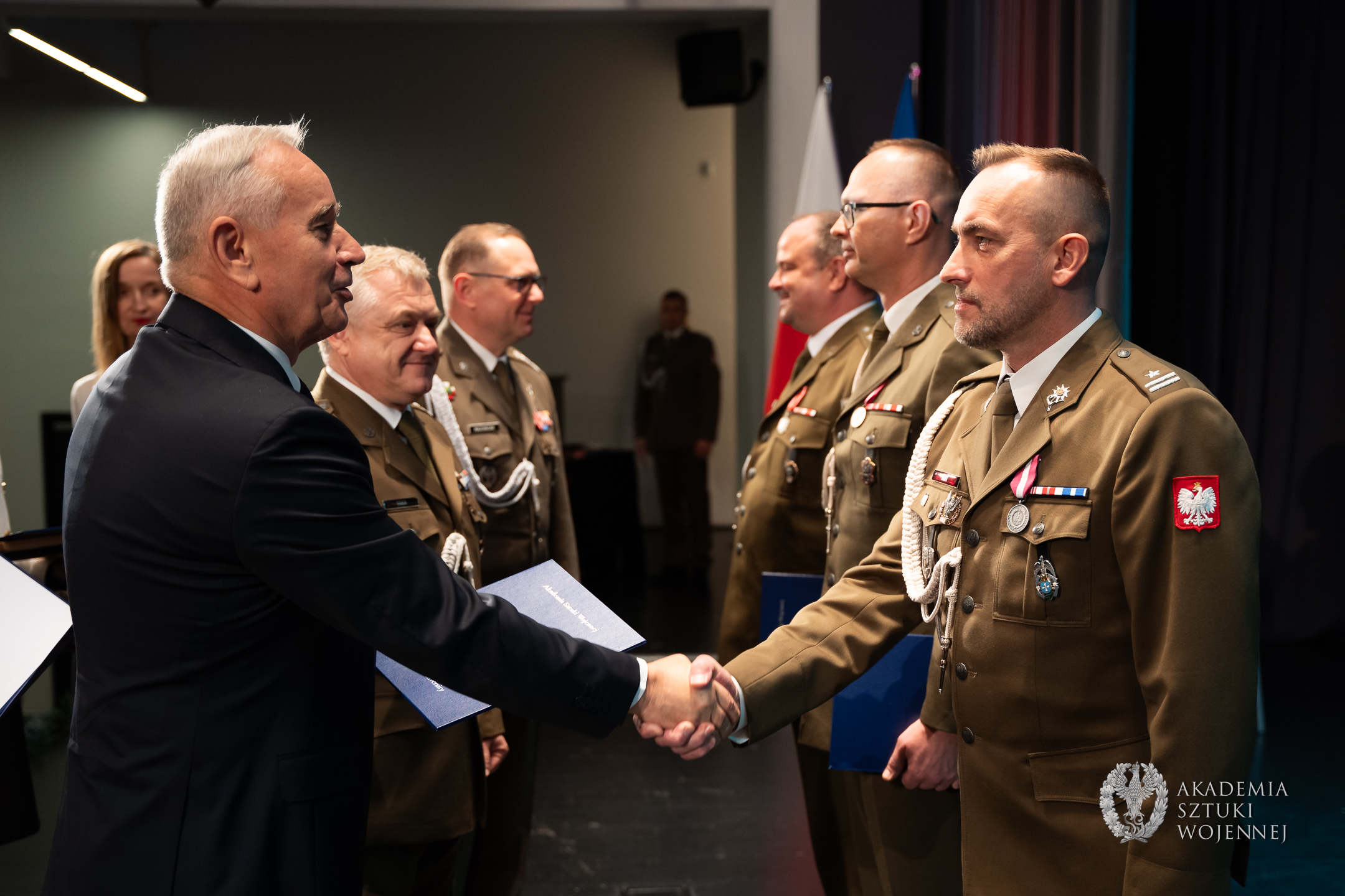 Ważnym punktem obchodów było wręczenie aktów mianowania na wyższe stopnie wojskowe, medali państwowych i resortowych, oznak pamiątkowych Akademii oraz wyróżnień Rektora.