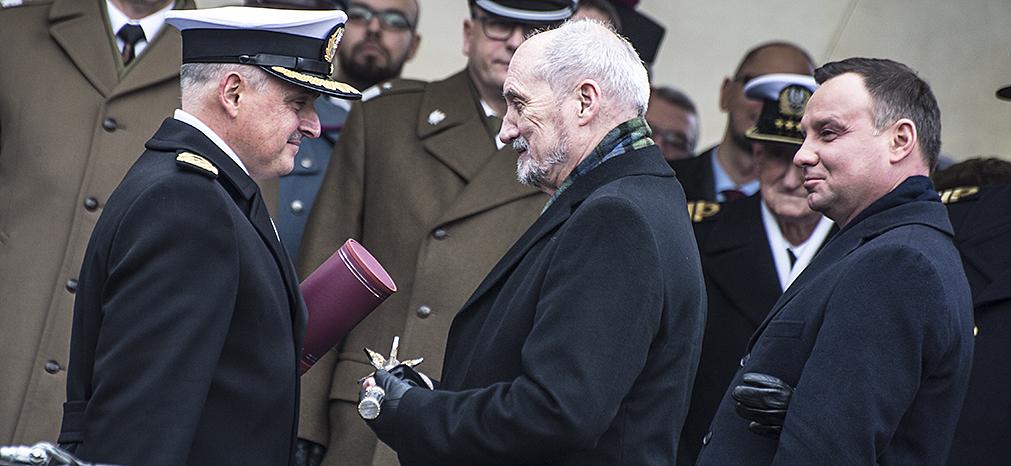 Chciałem w tym miejscu bardzo podziękować dowództwu i załodze ORP Kościuszko za służbę, jaką prowadzili w ramach właśnie zadań sojuszniczych na Morzu Egejskim i Morzu Śródziemnym, stając naprzeciwko fali migracji i zmagając się z tym napierającym na Europę problemem ? w ramach wojsk sojuszniczych. Życzę powodzenia naszym marynarzom z ORP Xawery Czernicki, którzy niedługo wypłyną dowodzić flotyllą Sojuszu Północnoatlantyckiego, zespołem okrętów niszczycieli min. Życzę i dowództwu okrętu, i załodze powodzenia w realizacji misji.