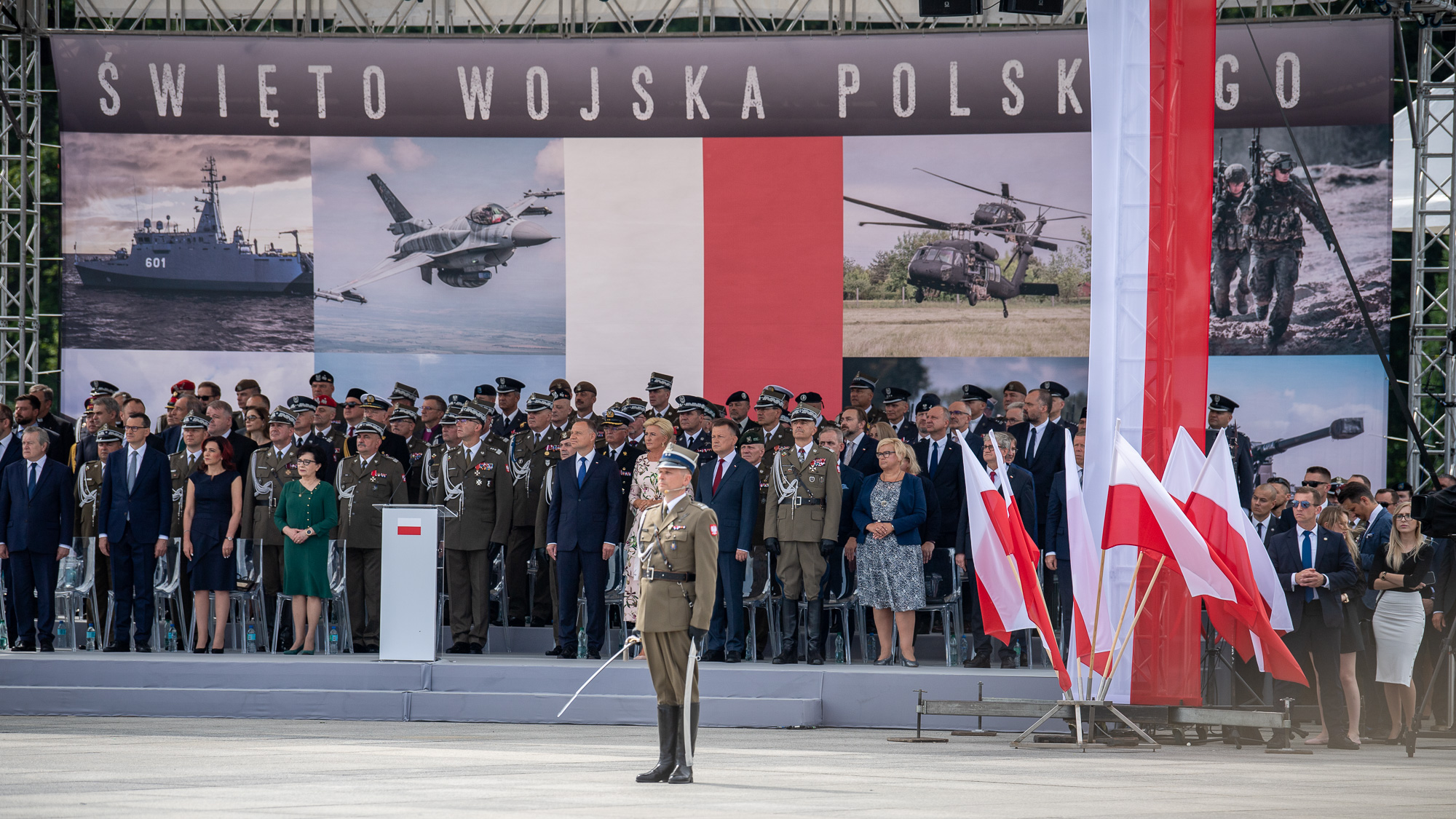 - Dzisiaj polski żołnierz ma swoje wielkie święto. Dziś dziękujemy żołnierzom za wytrwałą służbę, za dzielność i odpowiedzialność, za wzorowe codzienne wykonywanie obowiązków, czasem nawet z narażeniem życia. Tak trudnych lat nie było dla nas wszystkich na przestrzeni ostatnich czasów. Życzę wszystkim żołnierzom i Rodzinom wojskowym, rodzinom weteranów, by Polska zawsze była bezpieczna, by nigdy z bronią w ręku nie trzeba było stawać do obrony Ojczyzny. Niech żyje polski żołnierz. Niech żyje wolna i suwerenna Polska