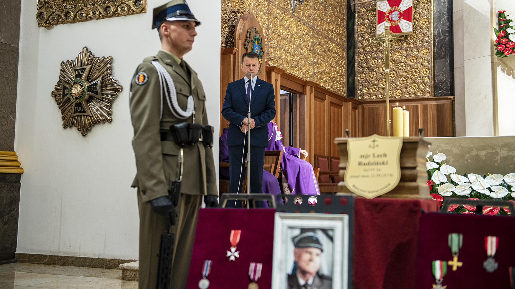 - Żegnamy dziś człowieka niezwykłego, żegnamy bohatera. Żegnamy człowieka, któremu przyszło żyć w bardzo trudnych czasach, ale który swoją drogą życiową udowodnił, że warto być Polakiem. Mimo niesprzyjających losów był wierny Ojczyźnie, wierny najświętszej Rzeczypospolitej - powiedział Mariusz Błaszczak, minister obrony narodowej podczas uroczystości pogrzebowych ppłk Lecha Rudzińskiego ps. "Goniec".