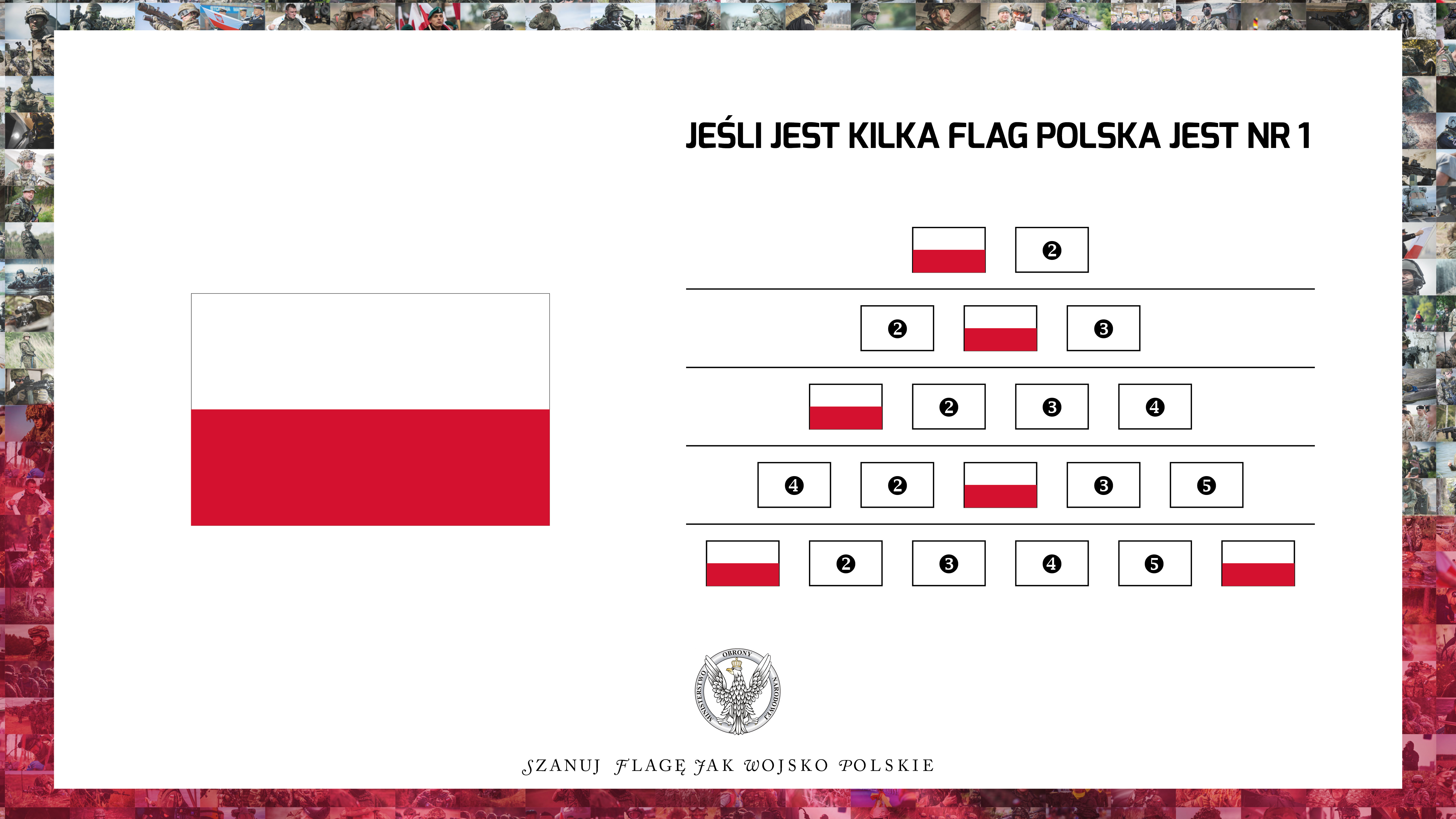 Przed Dniem Flagi i Świętem Narodowym 3 maja żołnierze Wojska Polskiego przypominają o najważniejszych zasadach prezentowania barw narodowych. W tym czasie w oknach, na balkonach, na budynkach, Polacy wywieszają biało-czerwone flagi by poczuć jedność, radość i dumę. Warto wiedzieć, że „w świecie flag jest hierarchia, jak w wojsku” i obowiązuje protokół flagowy. Żołnierze wszystkich rodzajów Sił Zbrojnych RP z całej Polski nagrali filmiki z przesłaniem „SZANUJ FLAGĘ JAK WOJSKO POLSKIE”.