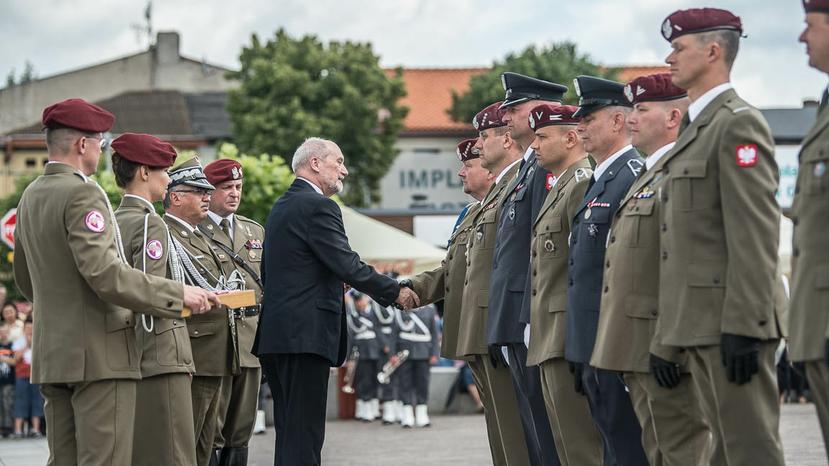 - Te 2% PKB które poświęcamy dzisiaj na uzbrojenie, wyszkolenie i powiększenie armii polskiej. Bo przecież poświęcenie polskich obywateli, to przecież wdowi grosz, który płacony jest także przez najbiedniejszych. Po to, by armia była silna, po to, by była zdolna obronić ojczyznę. Dzisiaj możemy, musimy, jesteśmy zobowiązani podziękować narodowi polskiemu za ten wielki wysiłek, który owocuje siłą polskiej armii, bo to jest decyzja którą naród podjął w wyborach 2015 roku, żeby Polska odbudowała silną państwowość, żeby Polska odbudowała silną armię, której jesteście tak wspaniałą, znakomitą częścią - mówił podczas uroczystości szef MON.