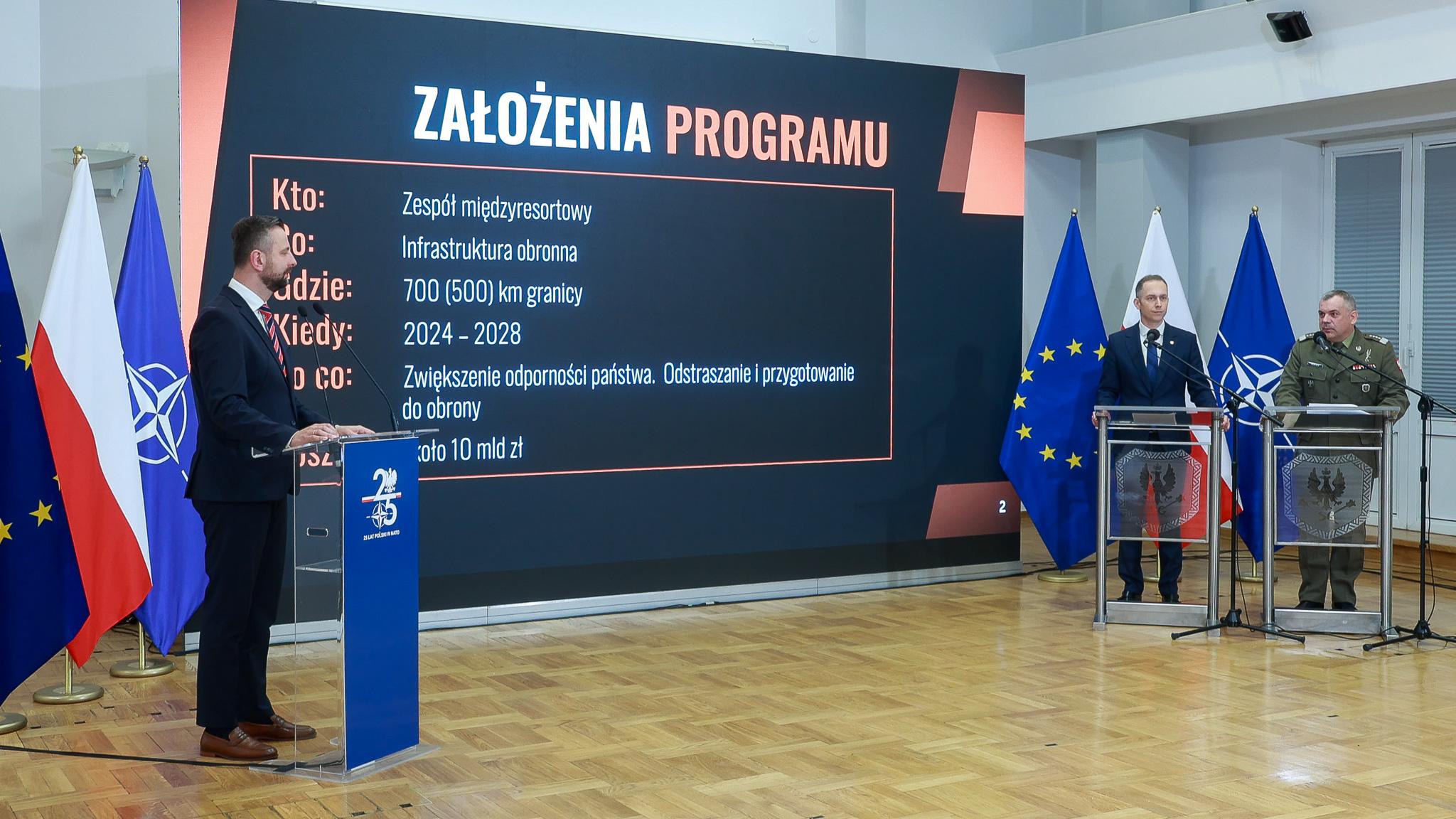 To są inwestycje dotyczące zarówno jednostek wojskowych i lotnisk, ale też spraw, które wiążą się z granicą Rzeczypospolitej. (…) Mamy do zabezpieczenia ok. 700 km granicy, w tym 400 km z Białorusią. Chcemy, żeby ten projekt był realizowany niezwłocznie. Zacznie się już w tym roku. Planowanie trwa. Chcemy, żeby ten program zakończył się w 2028 roku. Szacowany koszt to ok 10 mld zł. Mówimy tu tylko o kosztach materiałowych. To ogromna inwestycja w skali państwa, ale też w skali całego NATO