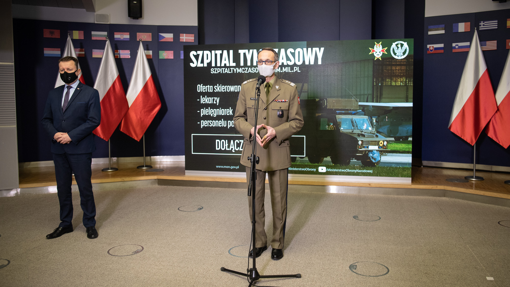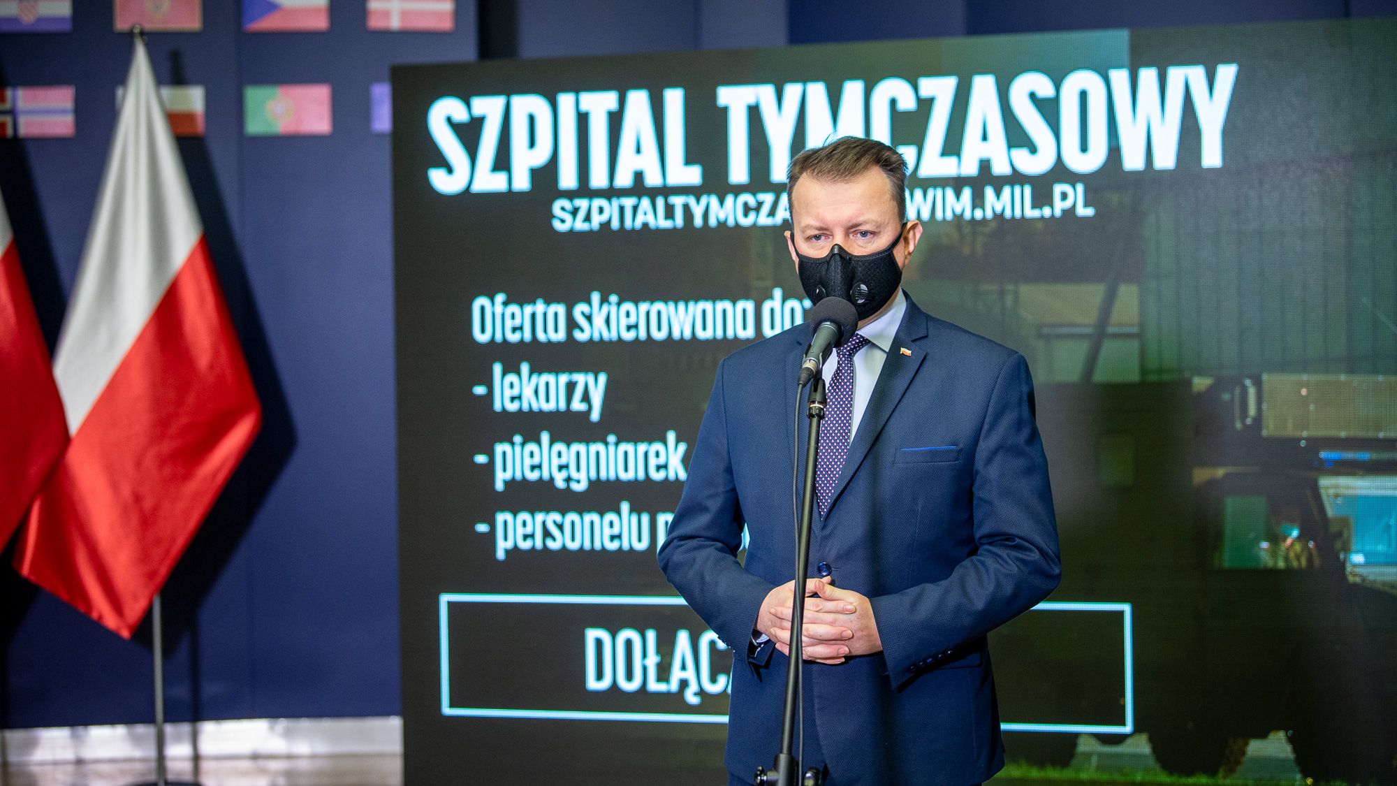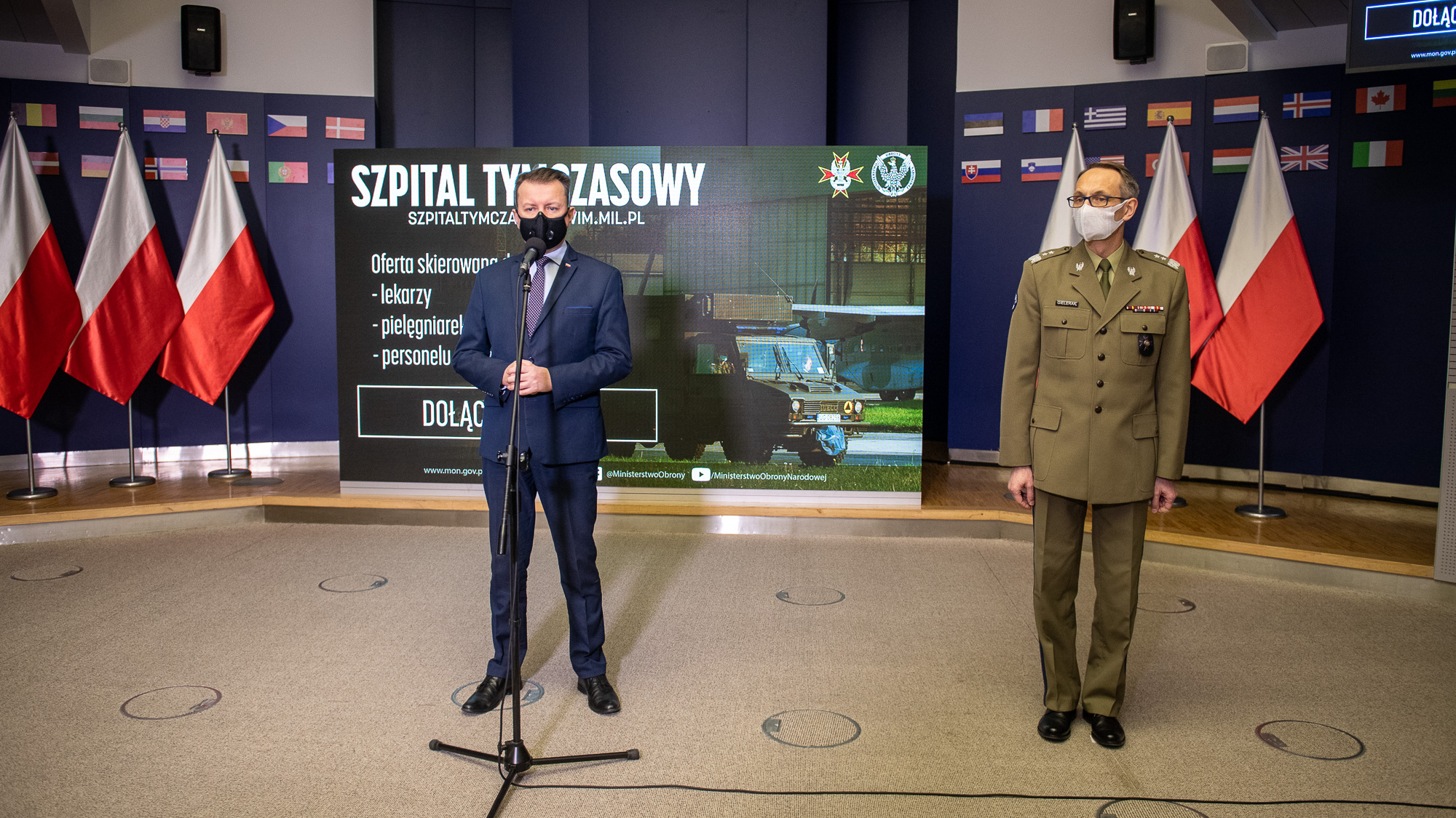 16 listopada br. szef MON podczas konferencji prasowej przedstawił założenia funkcjonowania nowego wojskowego tymczasowego szpitala, który powstaje w Warszawie, i w którym będą leczeni pacjenci zarażeni koronawirusem. Minister przedstawił także ofertę pracy dla medyków, którzy chcieliby dołączyć do zespołu lekarzy WIM i rozpocząć pracę w szpitalu. W konferencji uczestniczył gen. dyw. prof. dr hab. n. med. Grzegorz Gielerak, Dyrektor Wojskowego Instytutu Medycznego.