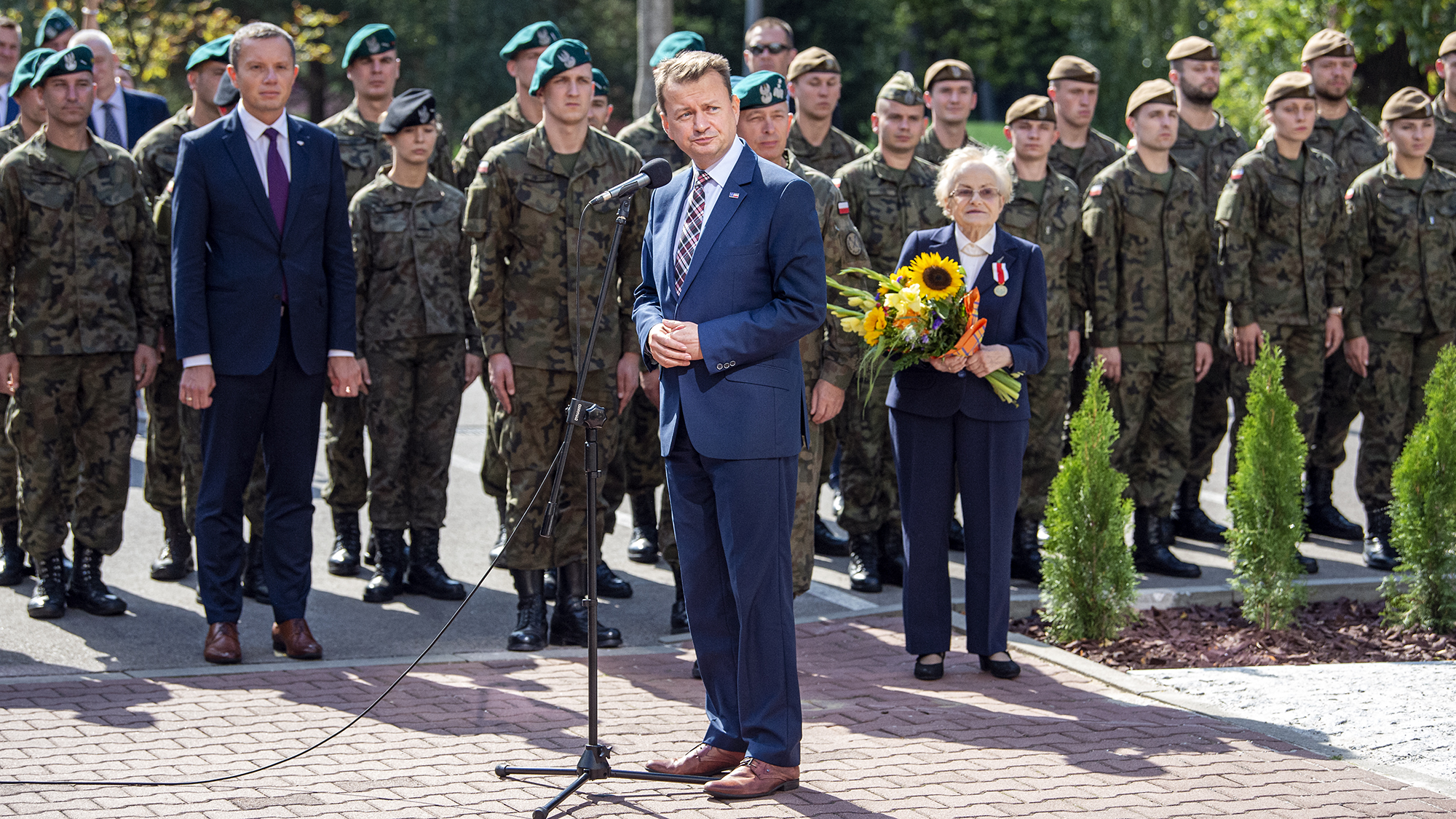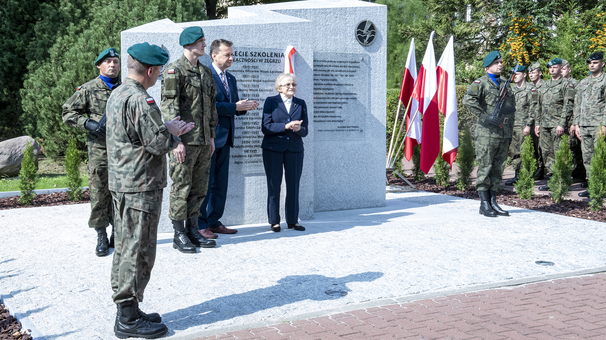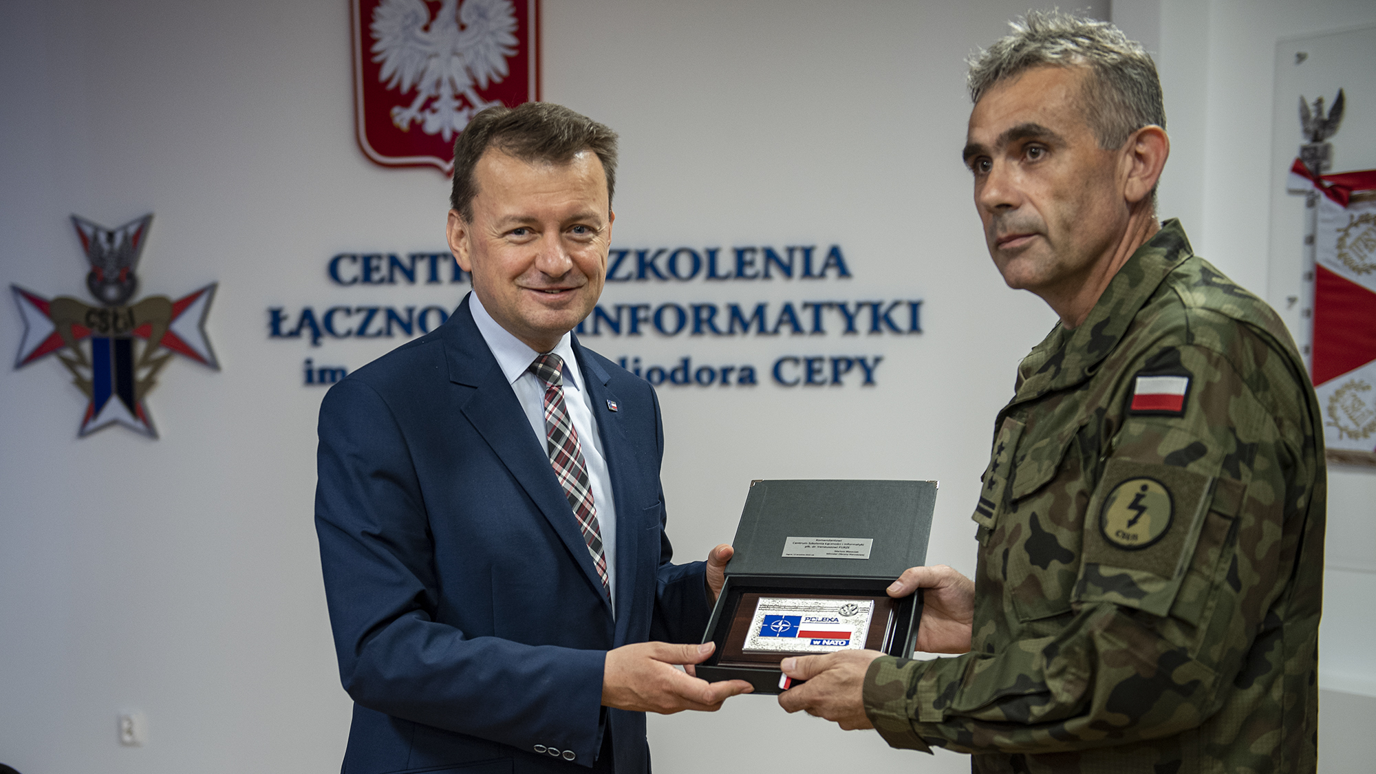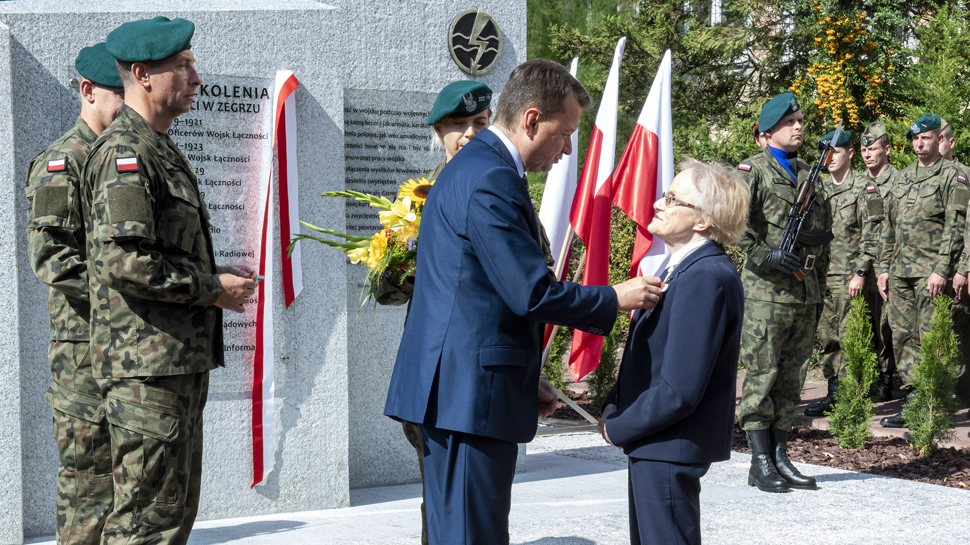 Mariusz Błaszczak, minister obrony narodowej w towarzystwie Zofii Potkowskiej- córki patrona Centrum Szkolenia Łączności i Informatyki gen. bryg. Heliodora Cepy i najmłodszego żołnierza Centrum odsłonił pomnik ufundowany w 100-lecie szkolenia kadr łączności w Zegrzu. Szef MON odznaczył także Zofię Potkowską Złotym medalem za zasługi dla obronności kraju.