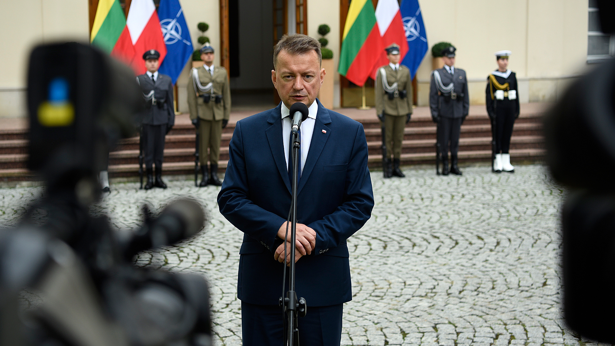 „Podczas rozmowy poruszyliśmy sprawy dotyczące bezpieczeństwa. Oba nasze kraje są doświadczane przez ataki hybrydowe ze strony białoruskiej. Oba nasze państwa ze sobą współpracują, jeżeli chodzi o przeciwdziałanie, jeżeli chodzi o budowanie odporności na te ataki. Wymieniliśmy się doświadczeniami związanymi z uszczelnianiem granicy, zarówno naszej, jak również granicy litewsko-białoruskiej„ - powiedział Mariusz Błaszczak, minister obrony narodowej po spotkaniu z szefem litewskiego resortu obrony.