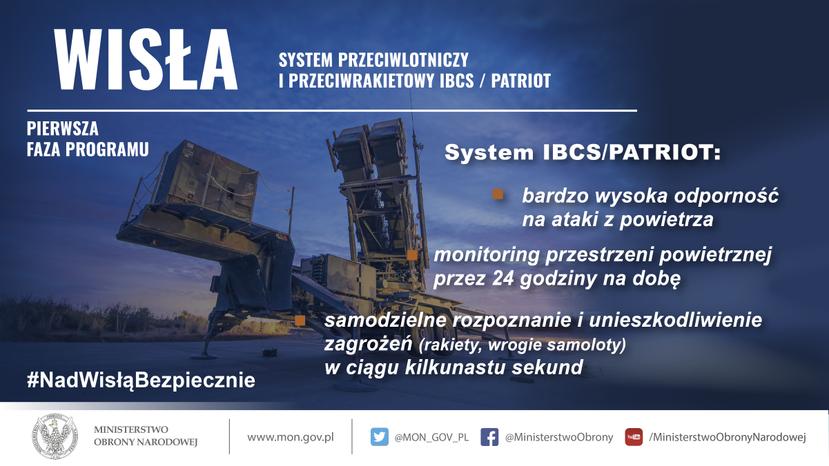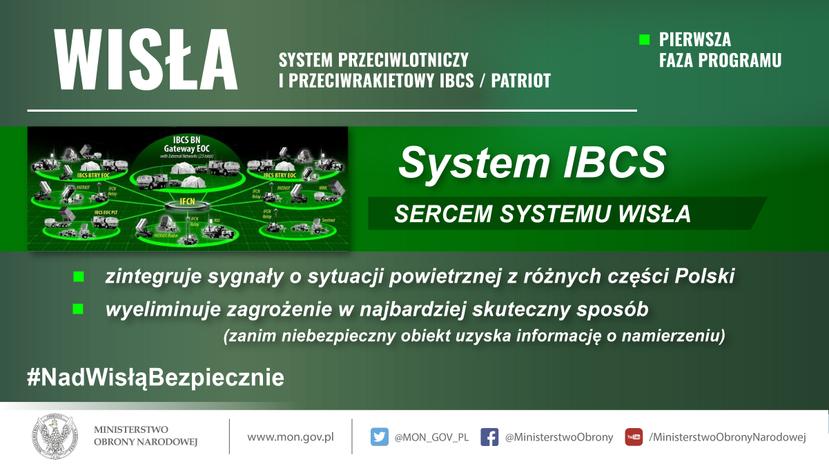 System IBCS/PATRIOT, dostarczony do Polski w ramach programu „WISŁA” sprawi, że nasz kraj uzyska bardzo wysoką odporność na ataki z powietrza. System będzie monitorować przestrzeń powietrzną przez 24 godziny na dobę, samodzielnie rozpozna zagrożenie, np. rakietę lub wrogi samolot i będzie w stanie go unieszkodliwić w ciągu kilkunastu sekund.