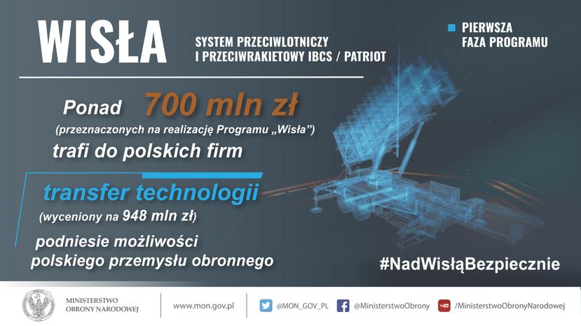 System „WISŁA” będzie jednym z głównych elementów tworzących system Obrony Powietrznej kraju. Minister Mariusz Błaszczak podpisał umowę na przeciwlotnicze i przeciwrakietowe zestawy rakietowe średniego zasięgu systemu „WISŁA – 1 Faza” w środę 28 marca 2018 roku w Warszawie w siedzibie PIT-RADWAR S.A. W uroczystości uczestniczył Andrzej Duda, prezydent RP i zwierzchnik Sił Zbrojnych, Mateusz Morawiecki , Prezes Rady Ministrów oraz Paul W. Jones, ambasador USA w Polsce.