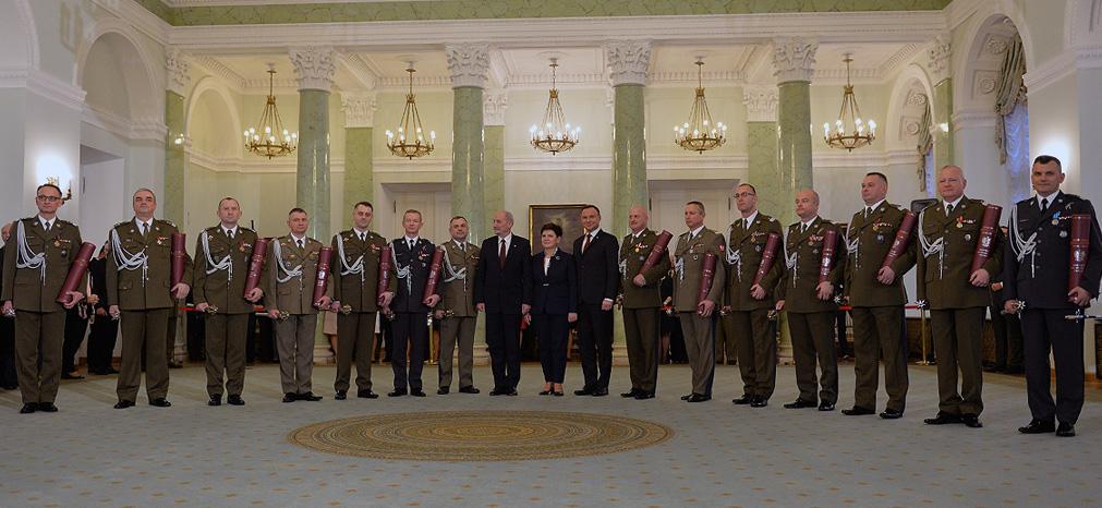 We wtorek w Pałacu Prezydenckim Prezydent Rzeczypospolitej Polskiej Andrzej Duda, na wniosek szefa MON, wręczył nominacje generalskie 14 oficerom. W uroczystości udział wzięła premier Beata Szydło. Obecny był także minister obrony narodowej Antoni Macierewicz.