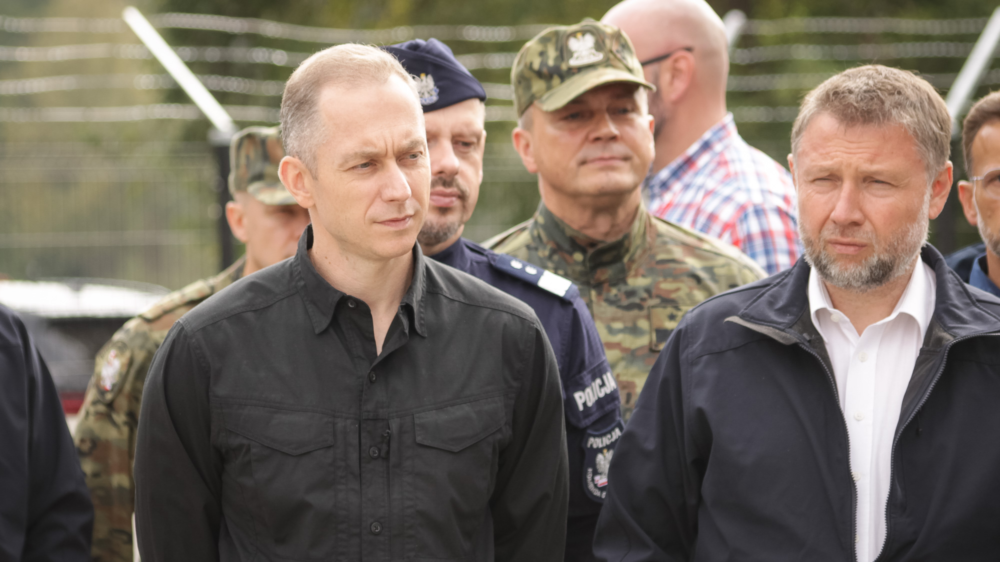 Po odprawie ze służbami, Donald Tusk i Ursula von der Leyen obejrzeli miejsce składowania elementów do budowy „Tarczy Wschód”, a potem zmodernizowaną, stalową zaporę na granicy, przy której - na zakończenie spotkania odbyła się konferencja prasowa.