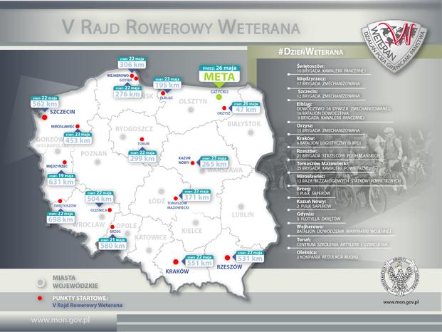 Łącznie z 15 jednostek wojskowych do Giżycka w dniach 19 - 22 maja wyruszyło 72 żołnierzy weteranów, którzy po pokonaniu kilkuset kilometrów, w dn. 26 – 28 maja wezmą udział w uroczystościach organizowanych z okazji Dnia Weterana Działań Poza Granicami Państwa.