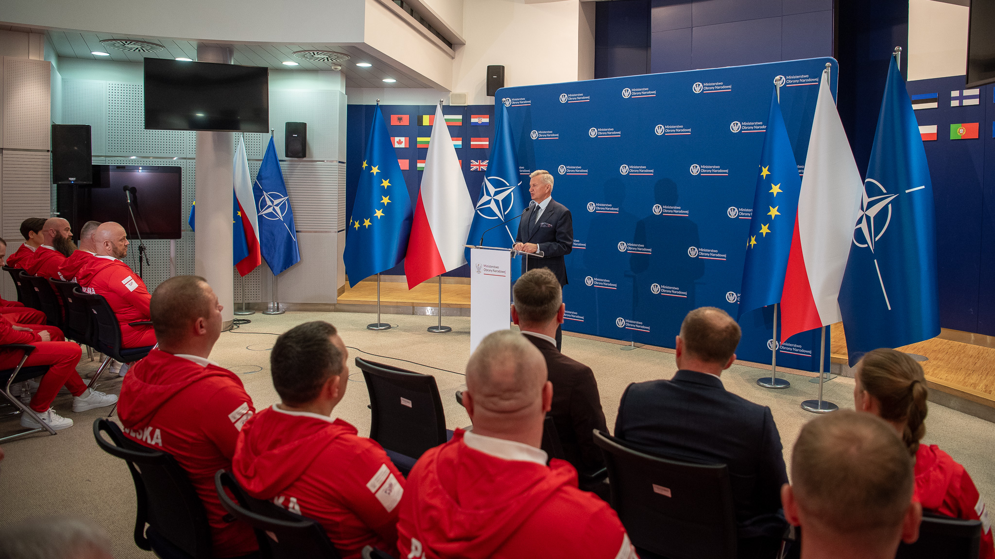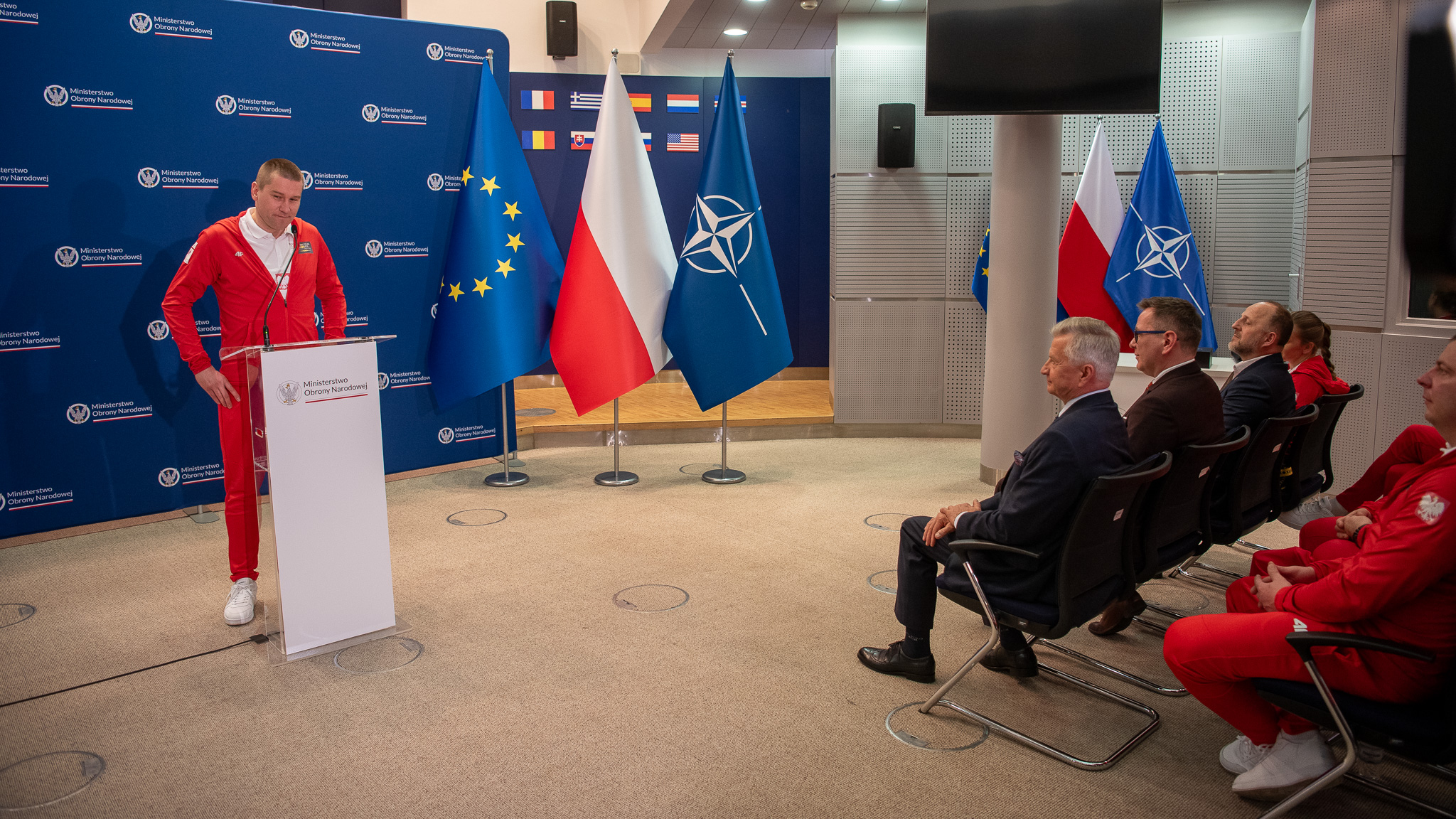 - Za wasze otwarte, gorące serca, za waszą wolę walki w imieniu pana premiera Władysława Kosiniaka – Kamysza i w imieniu całego resortu obrony narodowej składam najserdeczniejsze podziękowanie. Jesteśmy dumni, że potrafiliście dobrze reprezentować Wojsko Polskie, że potrafiliście tworzyć tę atmosferę zrozumienia dla drugiego człowieka, tworzyć partnerstwo i prawdziwą dobrą współpracę i przyjaźń. Bo sport ma moc zmieniania świata. Zmieniajcie ten świat. Zmieniajcie ten świat swoim hartem ducha, ale także życzliwością dla drugiego człowieka. Warto podkreślać to w takich trudnych czasach, w czasach kiedy jest tak dużo wokół nas zła, gdzie prowadzi się brutalną wojnę. To my możemy przeciwdziałać temu pokazując otwarte serca, pokazując życzliwość dla drugiego i budując w ten sposób pokój, porozumienie, tolerancję i szansę. Cieszę się bardzo, że w Vancouver wraz z innymi potrafiliście taką właśnie atmosferę stworzyć. Potrafiliście reprezentując nas, mówić o tym, co jest ważne dla każdego w życiu narodu, ale także dla każdego człowieka. (…) Kiedy wyjeżdżaliście na Invictus Games mówiliśmy, że nie te sukcesy są najważniejsze. Najważniejsze jest to, że jesteście niezwyciężonymi w swoim harcie ducha. (…) Gratuluję wam waszej postawy, gratuluję wam otwartych serc i dziękuję zarówno wam, jak i tym, którzy przygotowywali was do tego, żeby w tych zawodach wypaść jak najlepiej