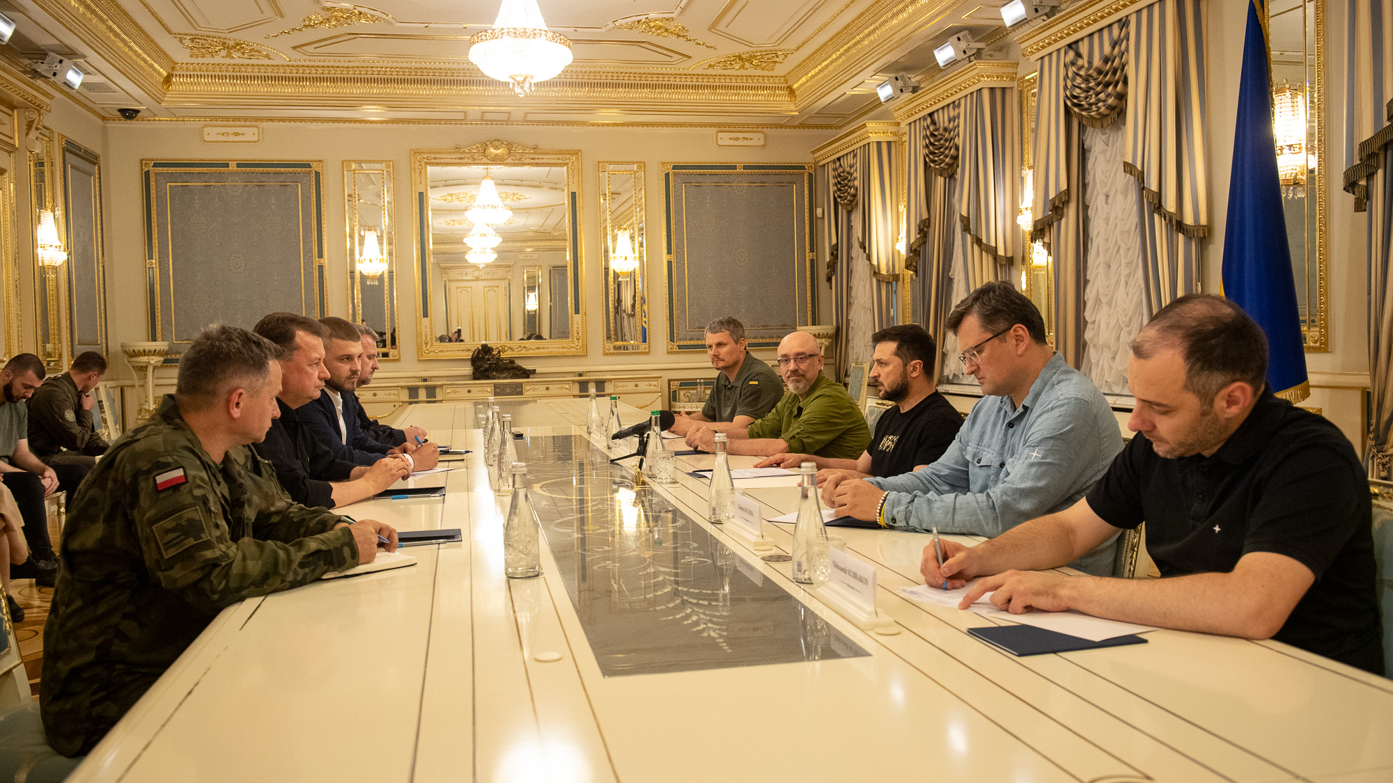 Szef polskiego resortu obrony narodowej spotkał się także z prezydentem Ukrainy Wołodymyrem Zełenskim. Rozmowy dotyczyły bieżącej współpracy polsko-ukraińskiej oraz sytuacji na froncie.