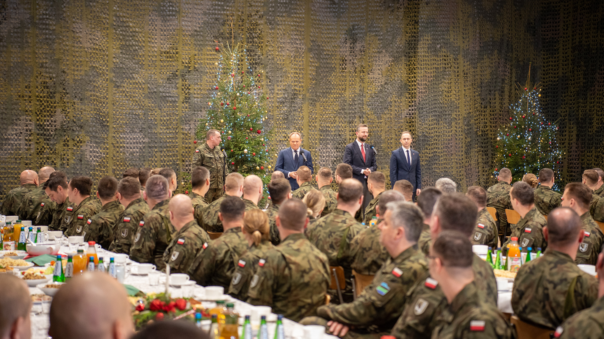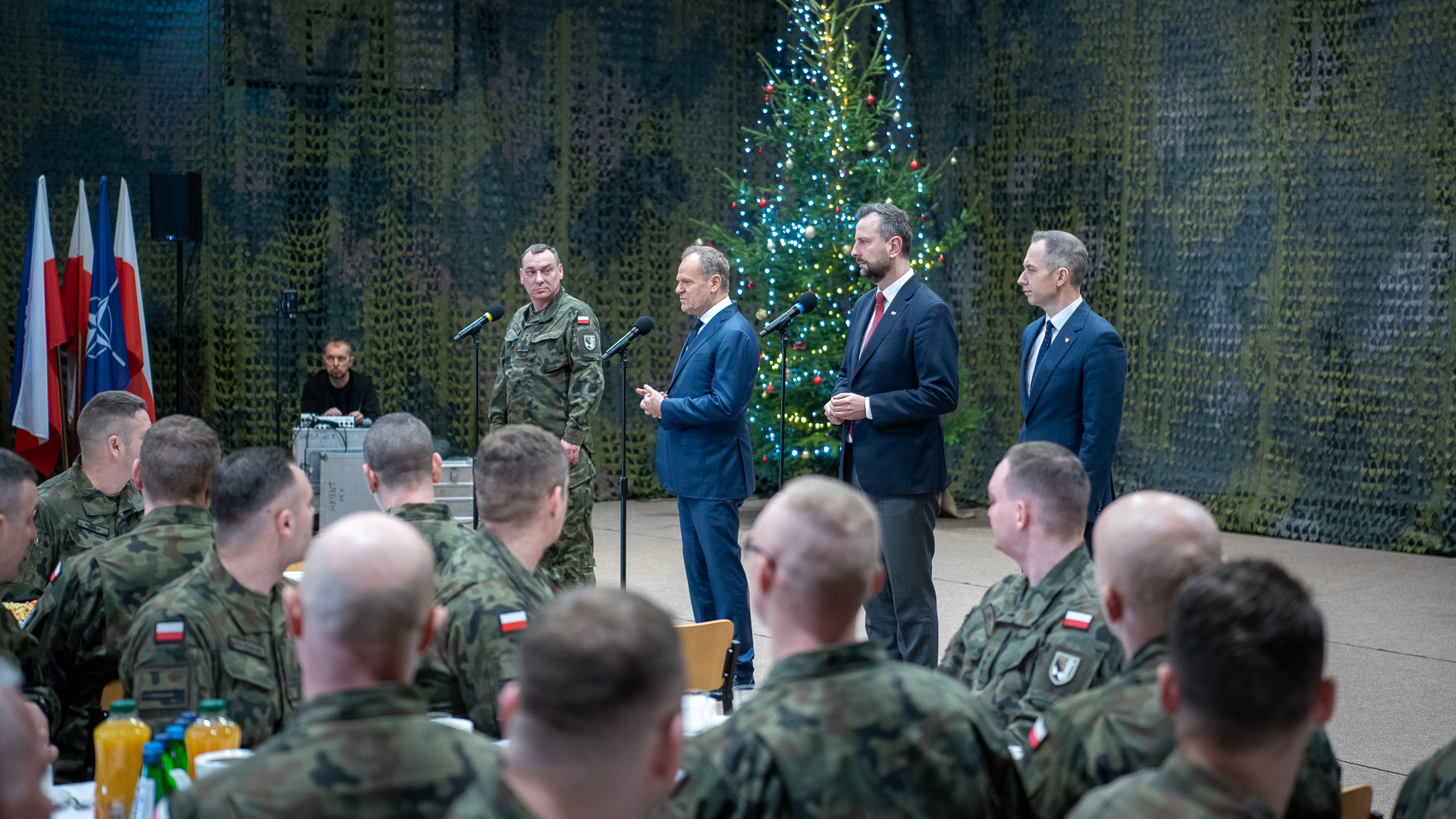 Chciałbym wszystkim Wam podziękować i tutaj, dzisiaj zgromadzonym, ale też wszystkim żołnierzom Wojska Polskiego w całej naszej ukochanej ojczyźnie za to, że jesteście, że przystąpiliście do armii, że służycie, że z dumą nosicie biało- czerwoną na ramieniu - powiedział wicepremier W. Kosiniak - Kamysz na spotkaniu świątecznym w Gołdapi.