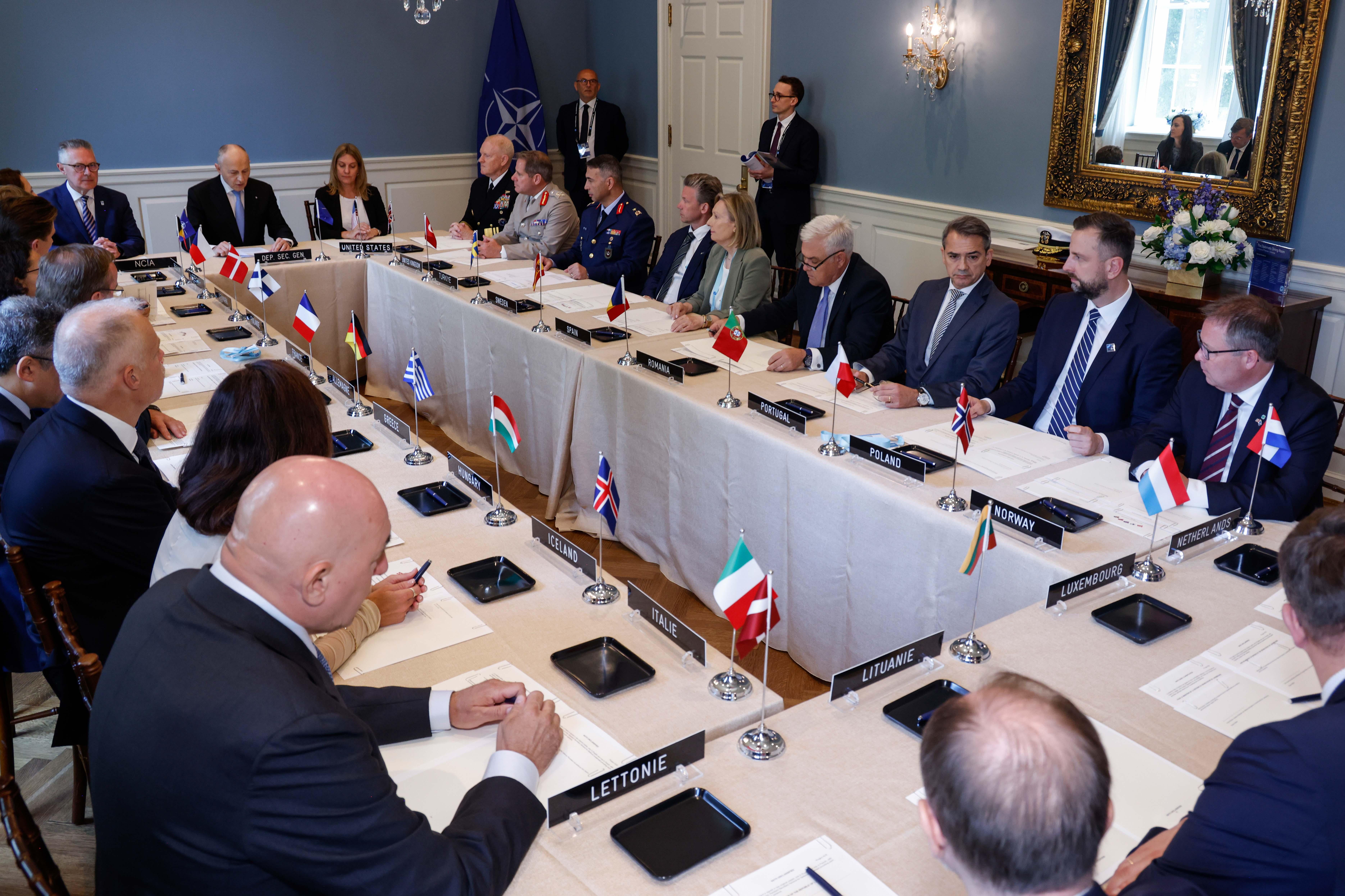 Za chwilę rozpoczyna się uroczysta sesja inaugurująca szczytu NATO. 75 rocznica to czas do świętowania, ale świętowanie bez takich praktycznych rozwiązań byłoby nieefektywne. Pan minister Zalewski podpisał dzisiaj kilka umów intencyjnych, które wzmacniają polskie bezpieczeństwo. Pierwsza dotyczyła wspólnego konsorcjum państw NATO, które będzie kupować miny morskie. Podpisały to kraje bałtyckie. (...) Druga kwestia dotyczy zwiększenia naszych zdolności w pozyskiwaniu zdjęć satelitarnych, w wykorzystaniu komponentu satelitarnego i koordynacji pomiędzy państwami. Trzecia umowa, którą przed chwilą podpisałem, dotyczy bezpieczeństwa w cyberprzestrzeni