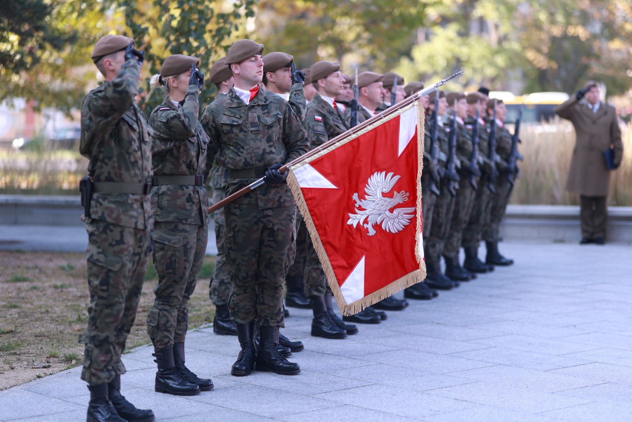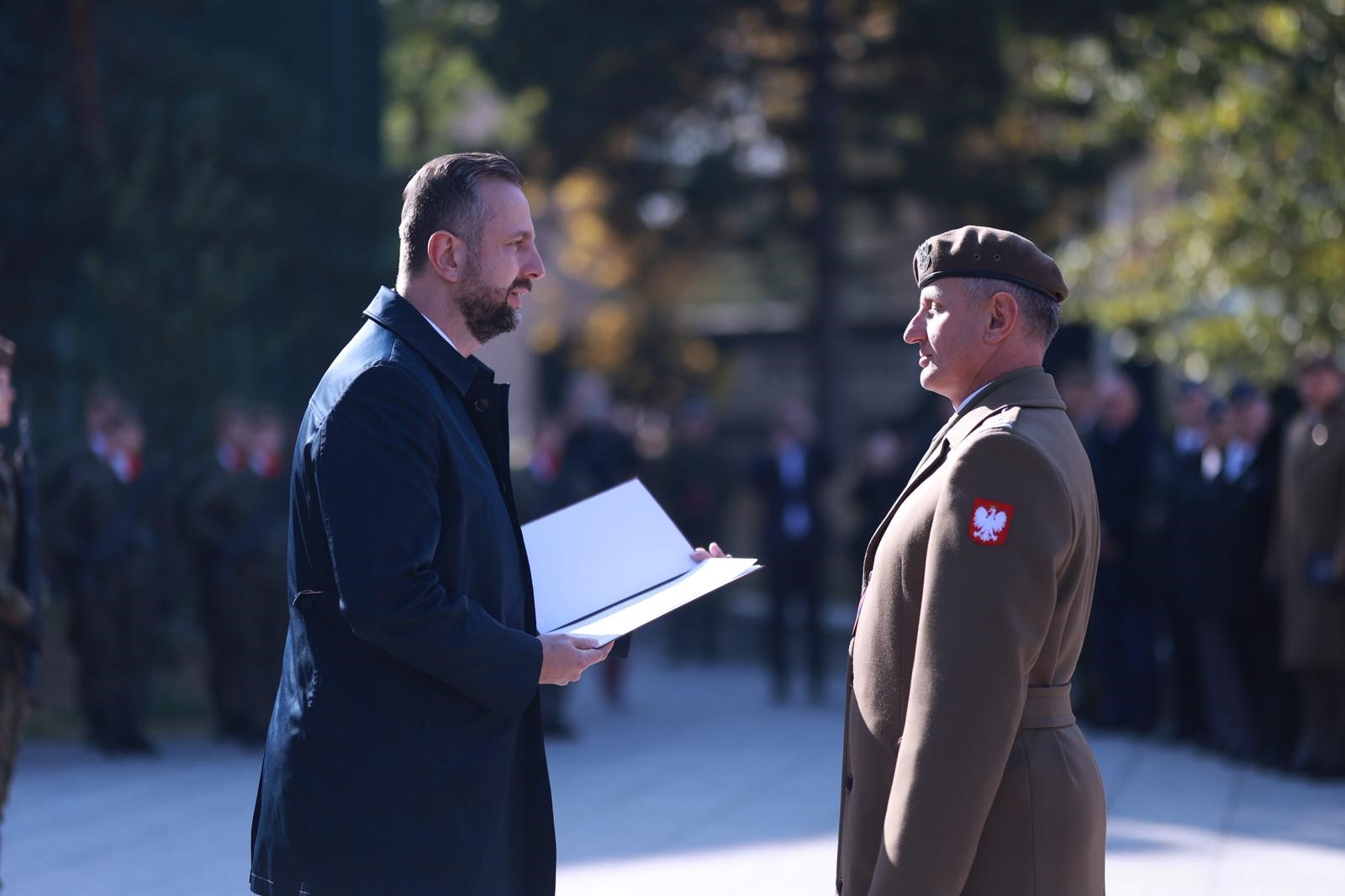 Jestem wdzięczny lubuskim terytorialsom i naszym dowódcom, na czele z Szefem Sztabu Generalnego, generałem Wiesławem Kukułą, za przyjęcie takiego patrona, za objęcie opieką tego miejsca, przed którym stoimy, i jego grobu na warszawskich Powązkach. Dziękuję dowódcy 15. Lubuskiej Brygady Obrony Terytorialnej, którą powołaliśmy w ubiegłym roku — jednej z ostatnich formowanych brygad — i która dziś przyjmuje swoje święto. Przyjmuje za patrona generała Franciszka Kamińskiego. To wielkie zobowiązanie, bo to nie tylko czas wojny i okupacji, ale też sześć lat spędzonych w komunistycznych więzieniach. To świadectwo ciągłości walki o wolną i w pełni suwerenną Polskę. Represje dotyczyły nie tylko jego, ale i jego rodziny — tak jak wielu rodzin w Polsce, których cierpienia nie skończyły się w 1945 roku. Tym bardziej jestem dumny, że Lubuska Brygada Obrony Terytorialnej będzie świadectwem, że ta historia się nie kończy