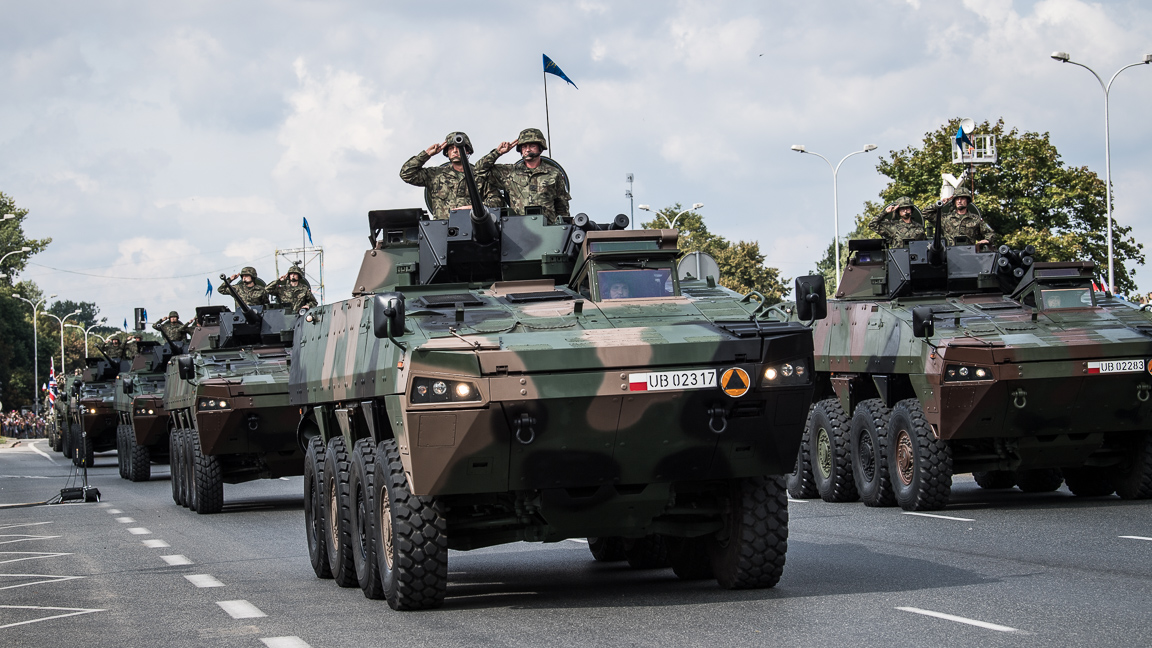 Następnie przedefilowało ponad 200 pojazdów kołowych i gąsienicowych, w tym transportery opancerzone Rosomak, moździerze RAK, armatohaubice KRAB, samochody humvee, transportery Stryker, czołgi Abrams, Twardy i Leopard, a także transportery minowania narzutowego Kroton oraz rampa szturmowa i inne.