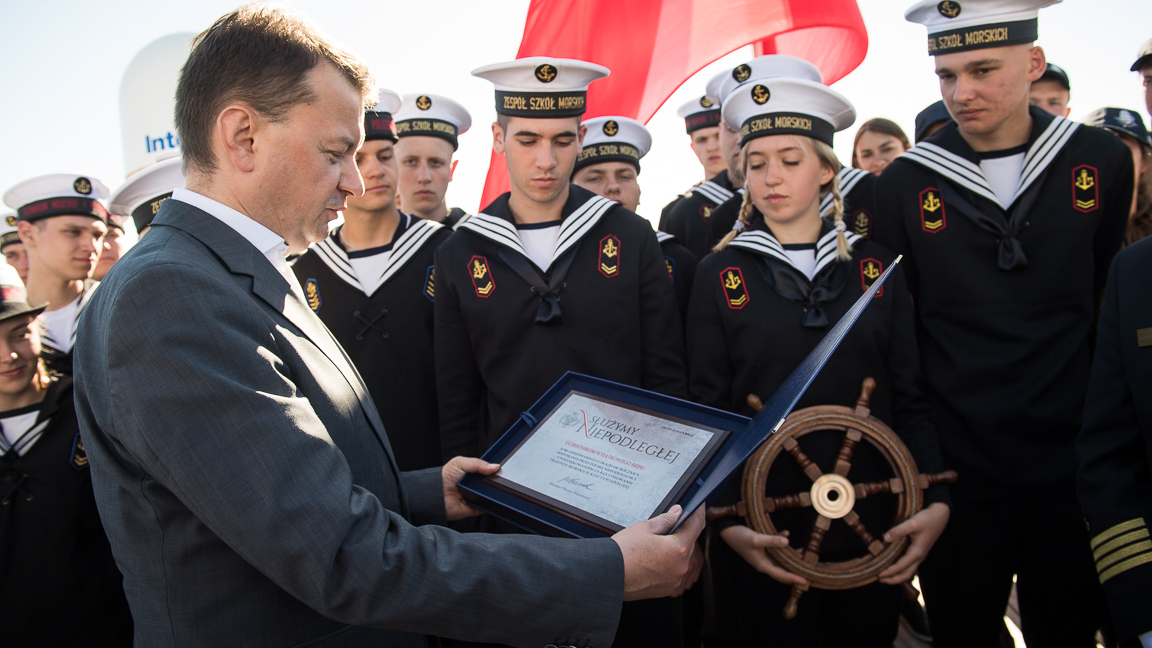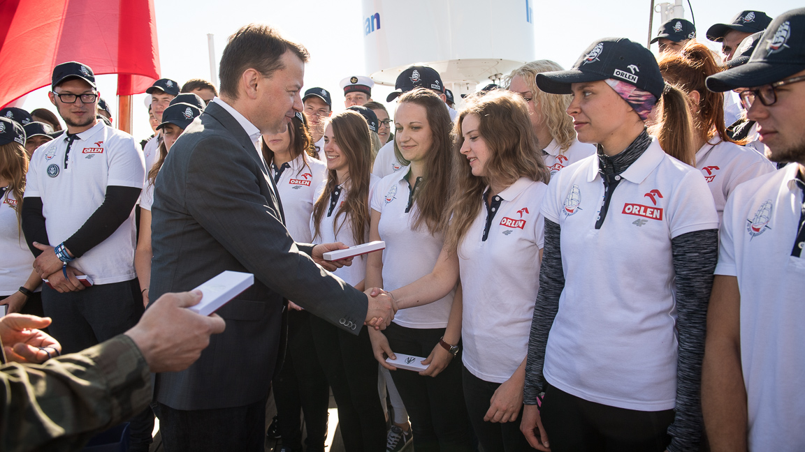 Dziękując młodzieży i organizatorom rejsu za zaangażowanie, za podjęcie tego wyzwania jakim jest promocja naszej Ojczyzny, zaznaczył, że Polacy są tym narodem, który myśli o przyszłości, ale nigdy nie zapomina o swojej przeszłości.