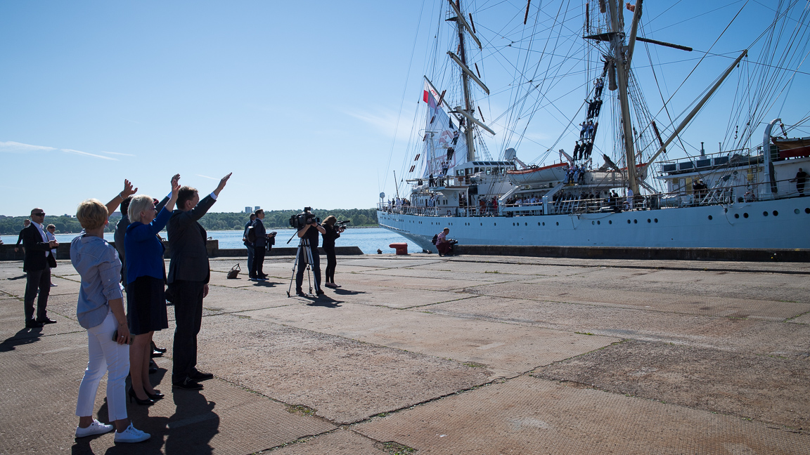 Spotkanie odbyło się w sobotę w porcie w Tallinie, który jest pierwszym portem na trasie polskiego żaglowca.
