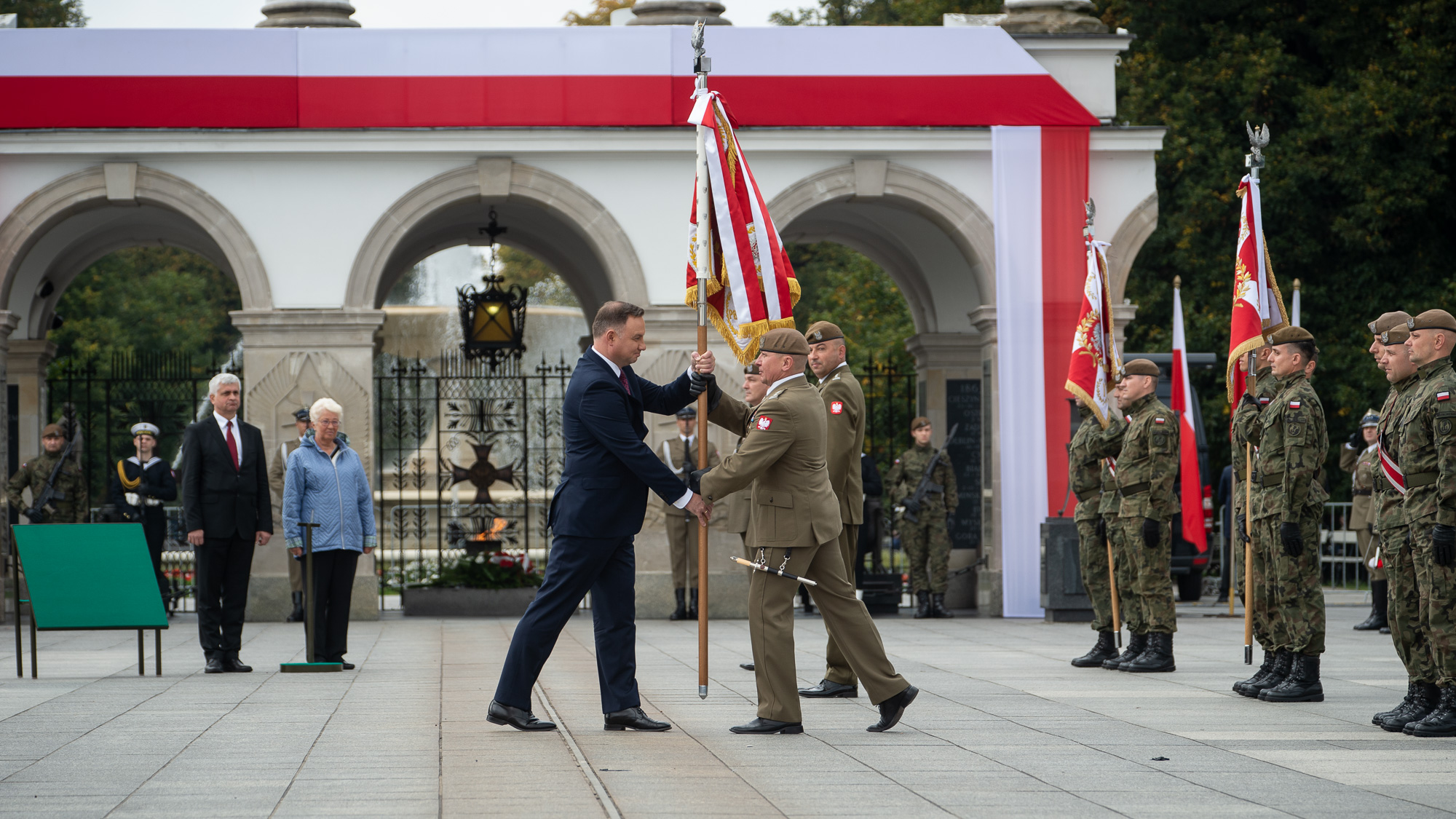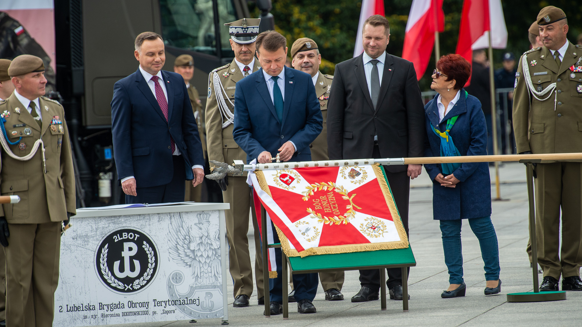 W piątek, 27 września br. na Placu Marszałka Józefa Piłsudskiego w Warszawie odbyły się centralne obchody święta Wojsk Obrony Terytorialnej. Podczas uroczystości Prezydent Andrzej Duda wręczył sztandary wojskowe pierwszym trzem brygadom Obrony Terytorialnej, a minister Mariusz Błaszczak wręczył nominacje na stanowiska dowódców brygad. Prezes Światowego Związku Żołnierzy Armii Krajowej profesor Leszek Żukowski przekazał testament Polski Podziemnej.