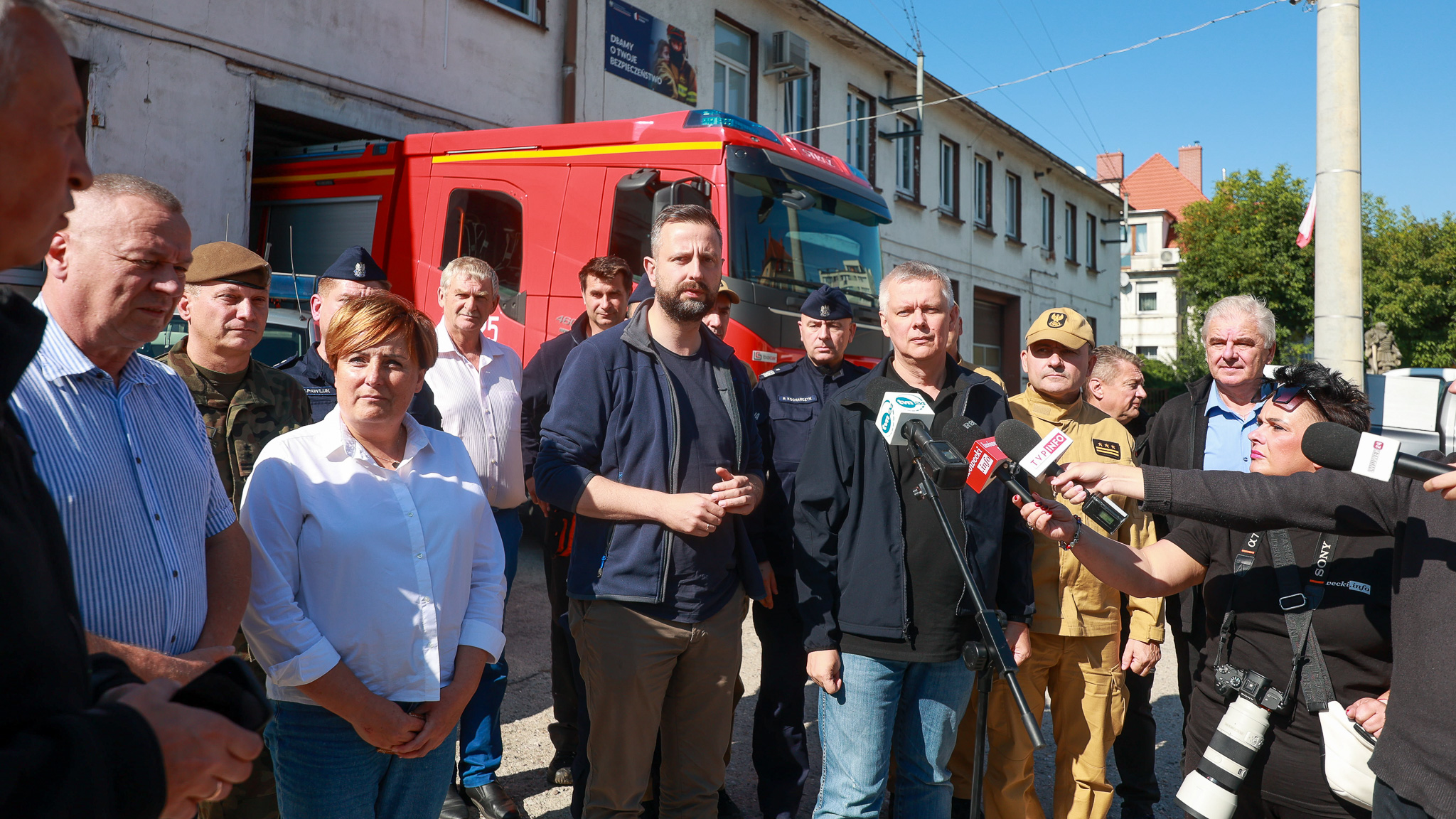 - Chcemy dodać otuchy tym wszystkim, którzy doświadczyli skutków podtopień i powodzi, tej nawałnicy i klęski. To jest wspólne działanie. Bardzo często wymieniane jest wojsko, często też straż ochotnicza i państwowa, ale też bardzo dużo ciepłych słów od mieszkańców usłyszeliśmy o Policji, która nie tylko pełni rolę w utrzymaniu porządku, ale autentyczne też w obronie przed tą wielką wodą. Bardzo dziękujemy i doceniamy funkcjonariuszy Policji, tu w Lwówku Śląskim, ale też na całej przestrzeni. Powiat lwówecki był przedmiotem decyzji Rady Ministrów i został objęty stanem klęski żywiołowej. Jesteśmy na etapie wzmacniania wałów w tych miejscach, do których zmierza woda. Byliśmy w Brzegu Dolnym. Tam woda ma 9 metrów. To są wartości absolutnie ogromne, które powodują jeszcze większe zaangażowanie wojska i innych służb, ale też samych mieszkańców. Ich poczucie odpowiedzialności za swoją okolicę jest naprawdę imponujące. W tych trudnych momentach my zawsze potrafimy się zjednoczyć