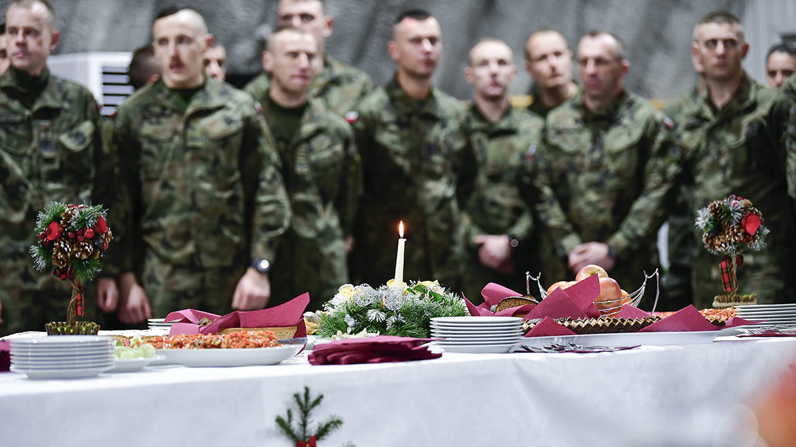 – Będziecie spędzać te święta poza domem rodzinnym. Tym większe słowa szacunku i podziękowania dla Was za pełnioną służbę. Przyjmijcie najserdeczniejsze życzenia, błogosławionych świąt Narodzenia Pańskiego i szczęśliwego Nowego Roku – powiedział Mariusz Błaszczak, minister obrony narodowej podczas wigilijnego spotkania z żołnierzami w Polskim Kontyngencie Wojskowym w Rumunii.