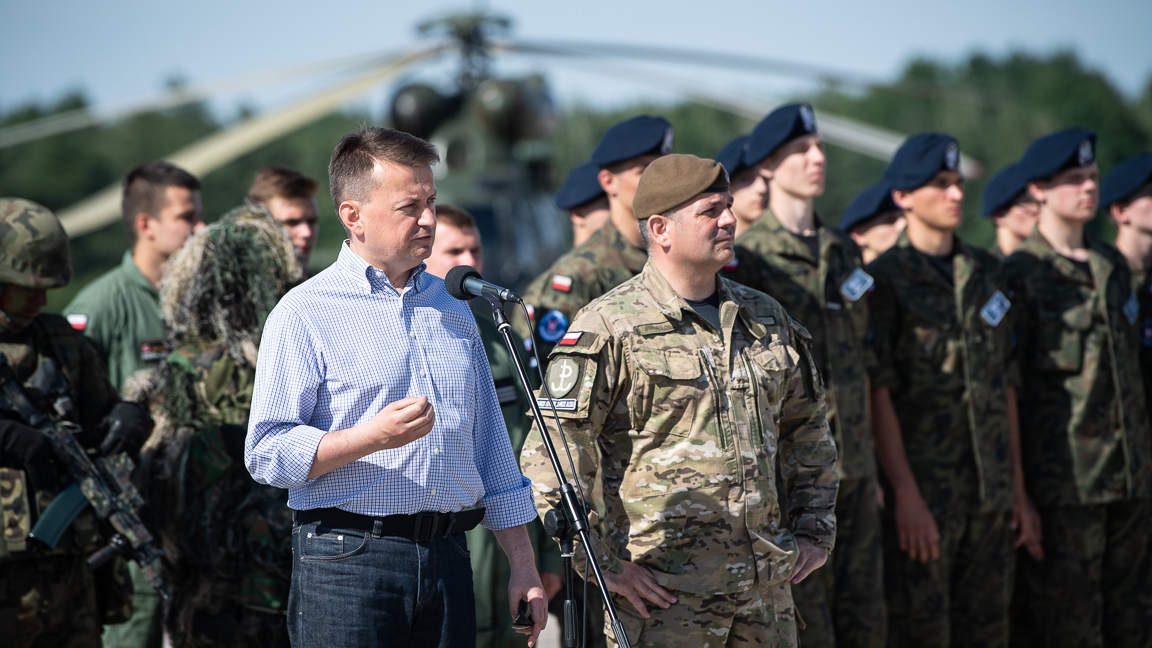 W sobotę szef MON podczas pobytu w Nowym Mieście nad Pilicą wziął udział w prezentacji praktycznego współdziałania Wojsk Obrony Terytorialnej z wojskami operacyjnymi, która odbyła się na dawnym lotnisku wojskowym.