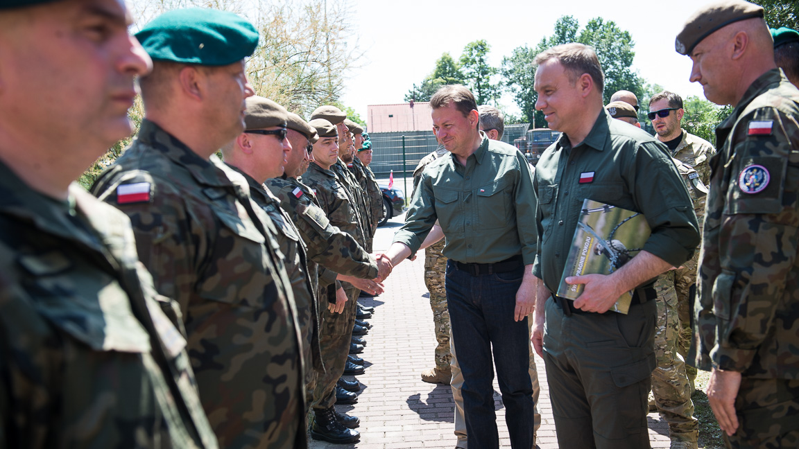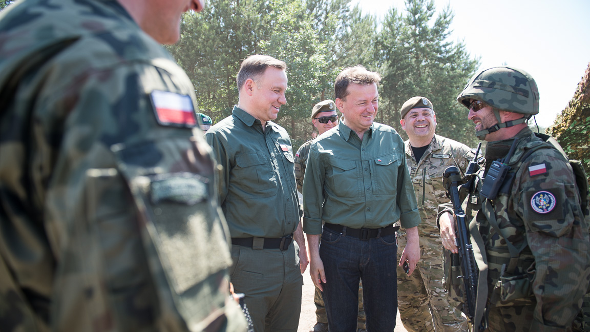 – Chciałbym podkreślić dzisiaj ten element, który mi i panu ministrowi rzucił się w oczy, a mianowicie niezwykle wysokie morale zarówno żołnierzy brygady obrony terytorialnej, jak i brygady strzelców podhalańskich. To są ludzie niezwykle oddani służbie, Ojczyźnie o wysokiej wartości i cieszy mnie, ze mamy takich żołnierzy. Mam nadzieję, że młodzi ludzie będą się zgłaszali do WOT i budowali ten nowy element naszych sił zbrojnych. Jak widać ćwiczenia były bardzo udane i gratuluję dowódcom – do ćwiczących żołnierzy zwrócił się zwierzchnik Sił Zbrojnych RP prezydent Andrzej Duda.
