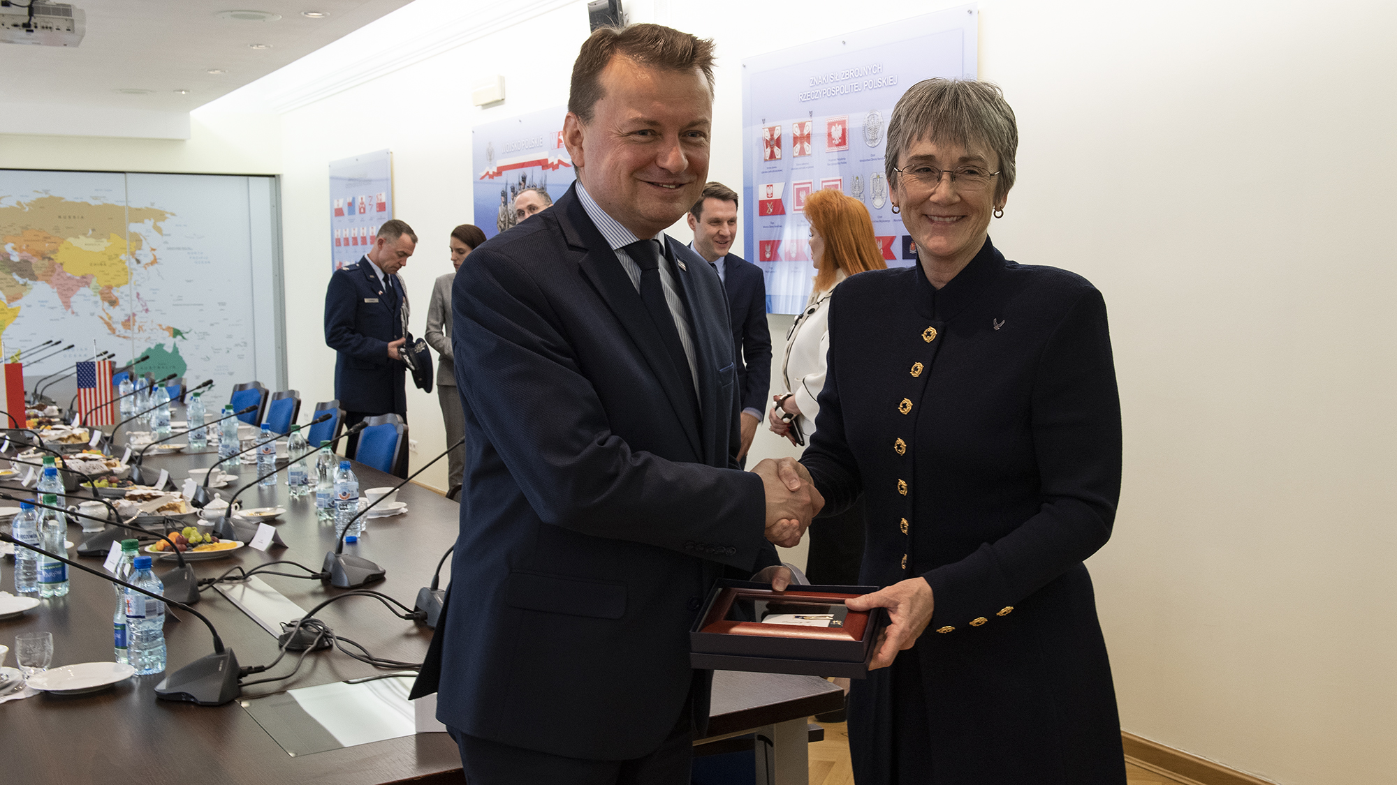 W spotkaniu uczestniczyła również Georgette Mosbacher ambasador USA w Polsce oraz attaché obrony i lotniczy USA, a także gen. bryg. pil. Jacek Pszczoła inspektor Sił Powietrznych, pełnomocnik do spraw pozyskania samolotów w ramach programu HARPIA oraz przedstawiciele departamentów MON: polityki bezpieczeństwa międzynarodowego, polityki zbrojeniowej oraz wojskowych spraw zagranicznych.