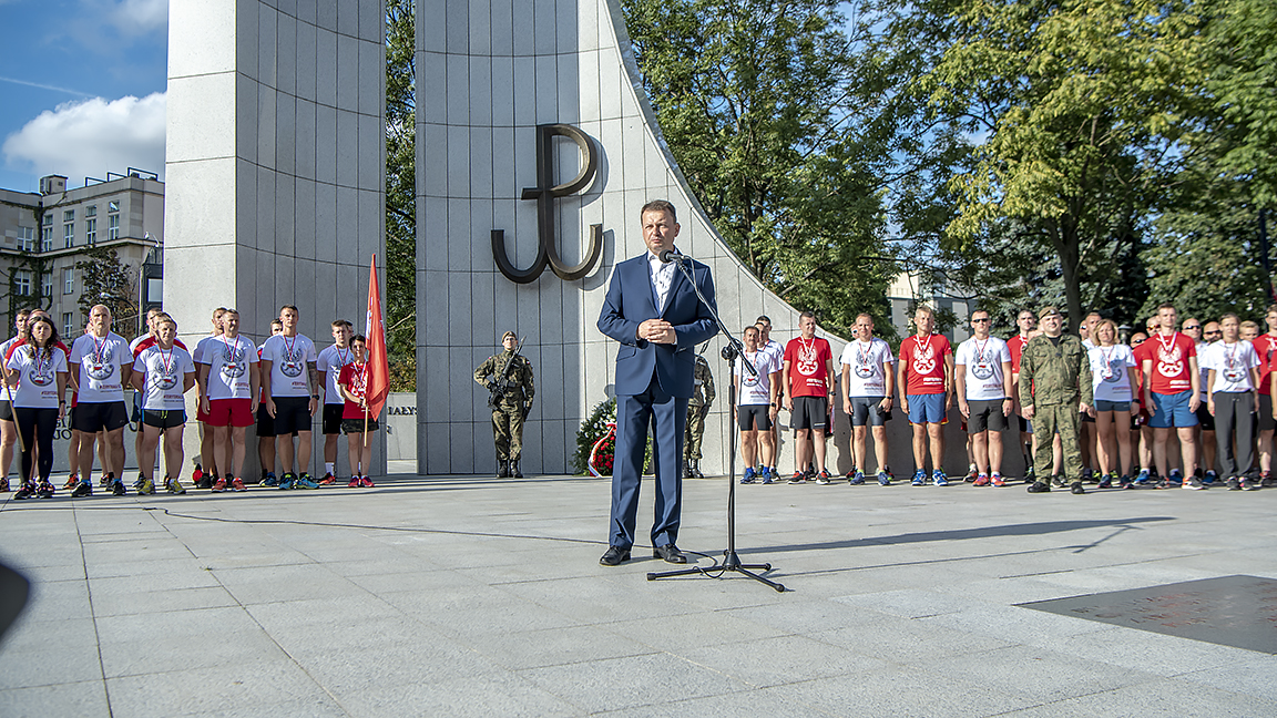 Startując z dwóch miejsc: ze źródeł i z ujścia Wisły, po przebiegnięciu blisko 1100 kilometrów dwie grupy biegaczy spotkały się w Warszawie. Minister zwrócił uwagę na symbolikę miejsca, w którym spotkał się z biegaczami i weteranami Armii Krajowej: