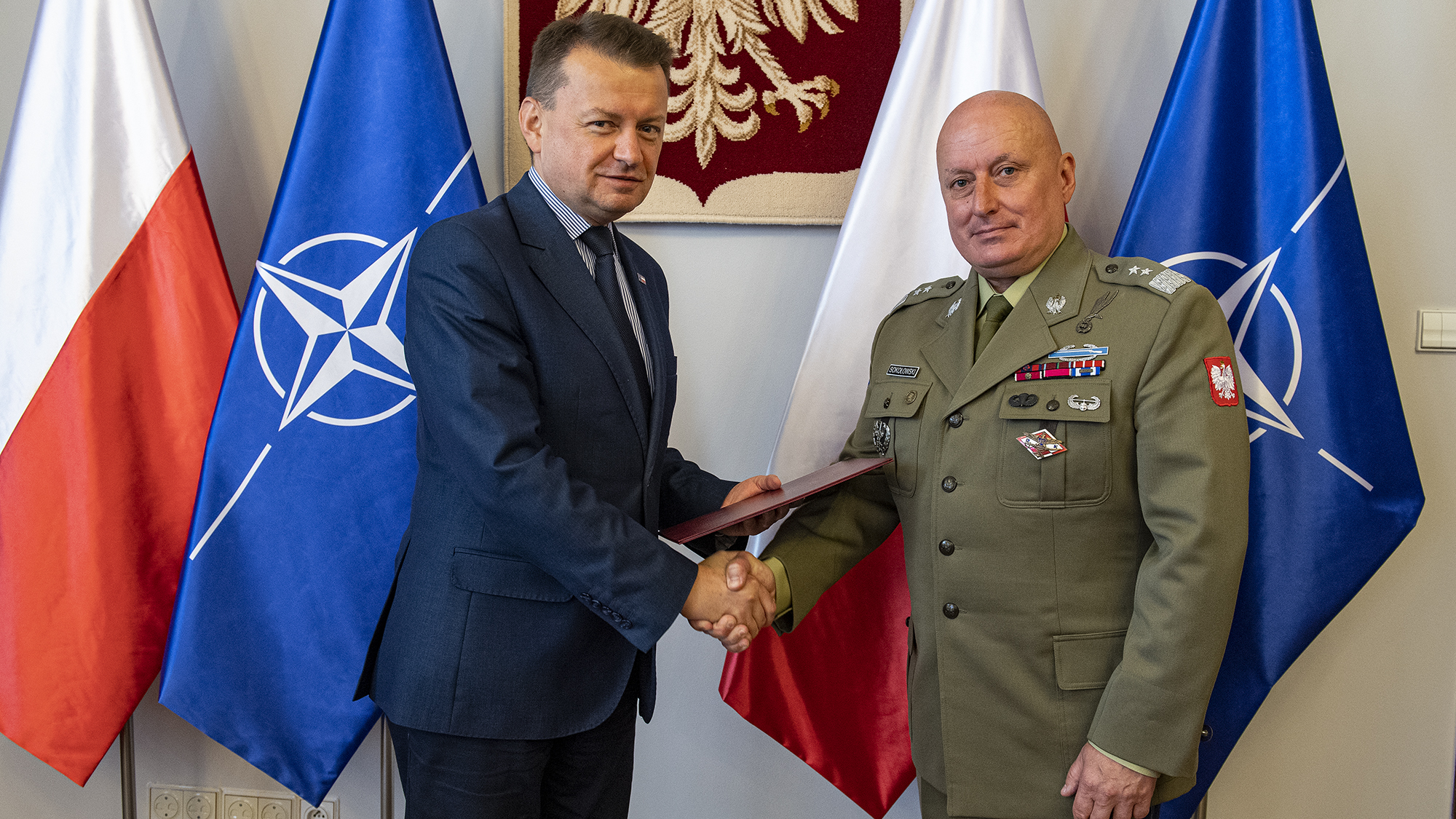 Mariusz Błaszczak, minister obrony narodowej wręczył w piątek nominacje na nowe stanowiska służbowe generałom Wojska Polskiego.