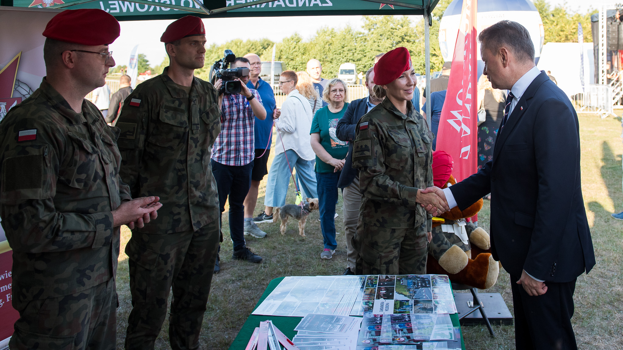 - W obronie Polski stanęło całe społeczeństwo. Były oddziały ochotnicze złożone ze studentów, byli ludzie, którzy oddali swoje życie za wolną Ojczyznę. Dziś świadomi zagrożeń. Świadomi tego, że ponowienie są próby odbudowy imperium rosyjskiego w wydaniu putinowskim szukamy najwłaściwszej odpowiedzi na te zagrożenia. Najwłaściwszą odpowiedzią na zagrożenia jest wzmacnianie polskiego wojska. Dlatego zwiększamy liczebnie wojsko. Dlatego wyposażamy Wojsko Polskie w nowoczesny sprzęt. Bardzo dziękuje, że tak wielu zgłasza się do służby w Wojsku Polskim. Czy to do dobrowolnej zasadniczej służbie wojskowej czy terytorialnej służby wojskowej. Dlaczego to jest także ważne? Dlatego, że odstraszamy agresora. Chcemy pokoju, ale żeby pokój był musimy mieć silne Wojsko Polskie
