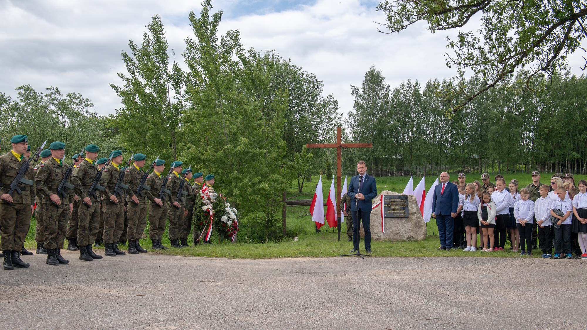 - Bardzo się cieszę z tego, że również młodzież z miejscowej szkoły jest obecna na tej uroczystości, że pamięta, że nauczyciele pamiętają, że będą opiekowali się tym miejscem pamięci. Miejscem szczególnym, związanym z walką do końca, z oddaniem służbie najjaśniejszej Rzeczypospolitej. Ta pamięć będzie wieczna - mówił szef MON.