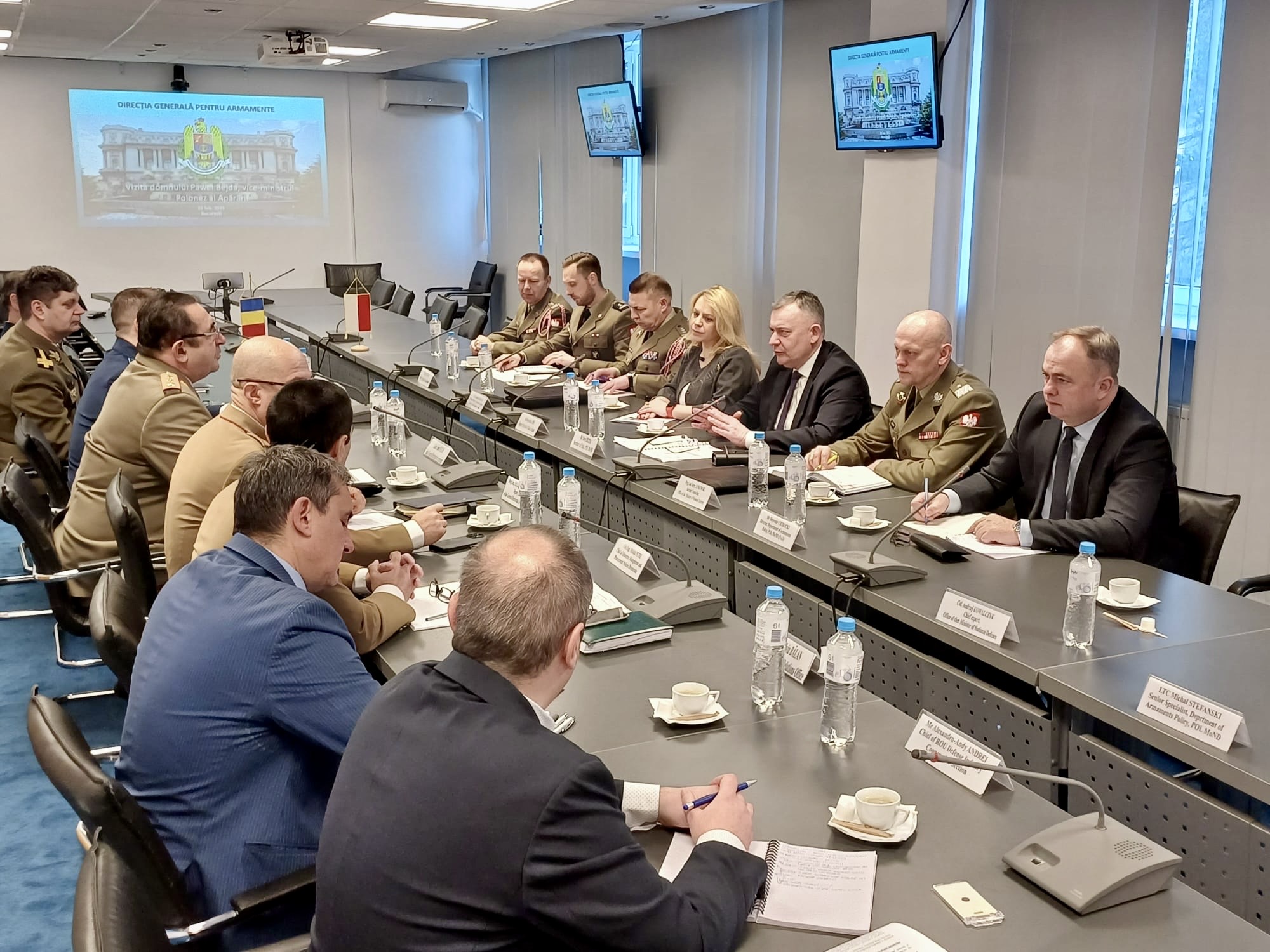 Pierwszym punktem programu było spotkanie w Generalnej Dyrekcji ds. Uzbrojenia (GDA) z jej dyrektorem generalnym, generałem broni Teodorem Incicaşem. Rozmowy koncentrowały się na wymianie doświadczeń w zakresie modernizacji sił zbrojnych, w tym systemu pozyskiwania sprzętu wojskowego.