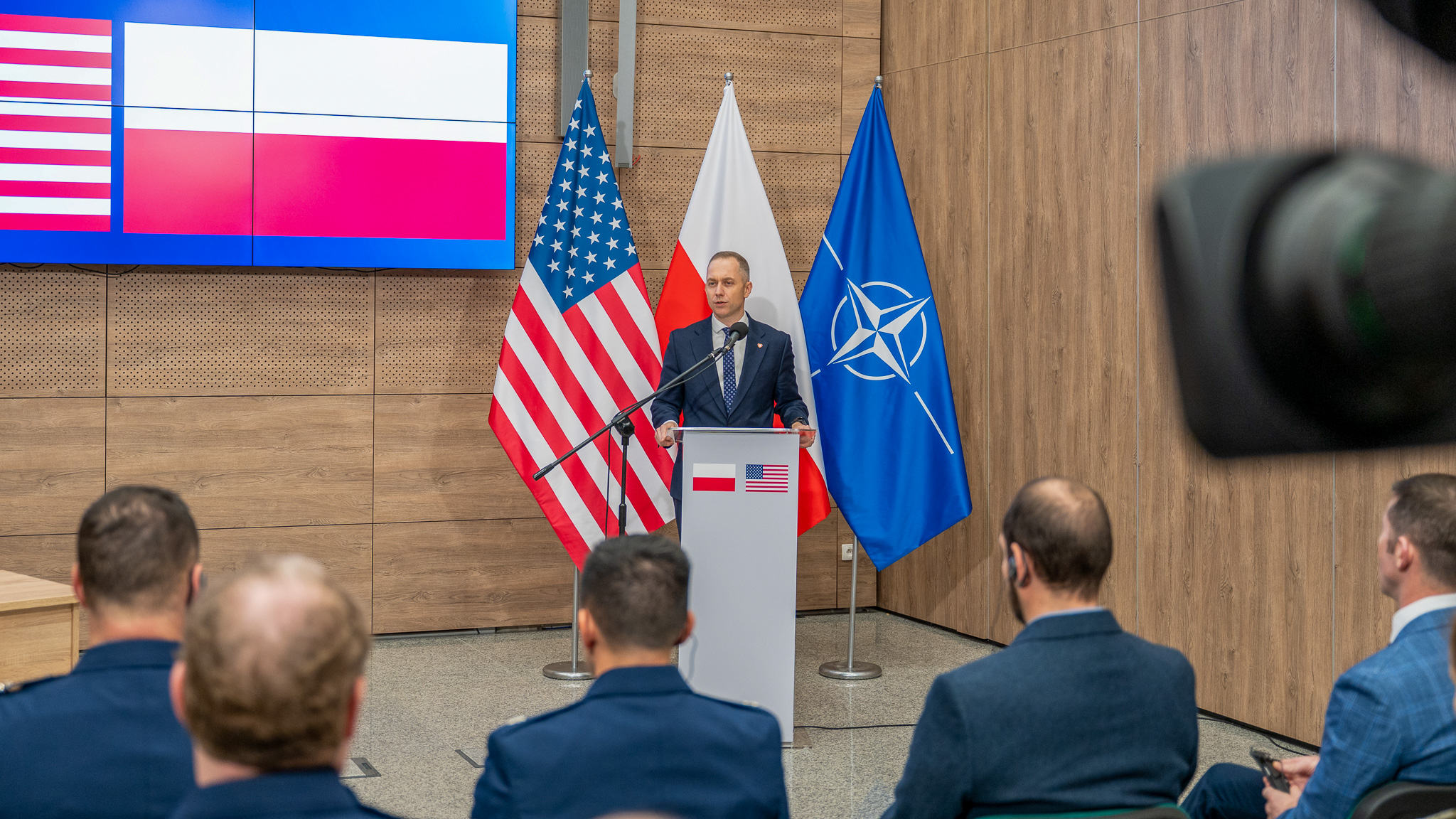 - Biało-czerwona flaga, flaga amerykańska, flaga NATO — to są dziś symbole naszego bezpieczeństwa. Dla naszego kraju, dla naszego rządu, dla naszego państwa sojusz ze Stanami Zjednoczonymi Ameryki jest sojuszem kluczowym, który pokazuje, że bezpieczeństwo dla obu naszych krajów jest sprawą fundamentalną. I tak jak powiedział ostatnio ambasador Tom Rose, jest to sojusz oparty na wspólnych interesach. Dzisiaj Polska, budując swój potencjał, budując potencjał swojej armii, budując Tarczę Wschód, budując nasze zdolności w poszczególnych domenach, jest partnerem dla Stanów Zjednoczonych w zakresie bezpieczeństwa i żelaznym sojusznikiem. Wiemy też, że możemy liczyć na Stany Zjednoczone w każdym momencie, jeżeli kiedykolwiek przyszedłby moment próby. Dzisiejszy list intencyjny o podpisaniu porozumienia między Dowództwem Komponentu Wojsk Obrony Cyberprzestrzeni, z panem generałem Molendą na czele, a dowództwem amerykańskim jest pierwszym z wielu, który pozwoli zyskać nowe zdolności polskiej armii