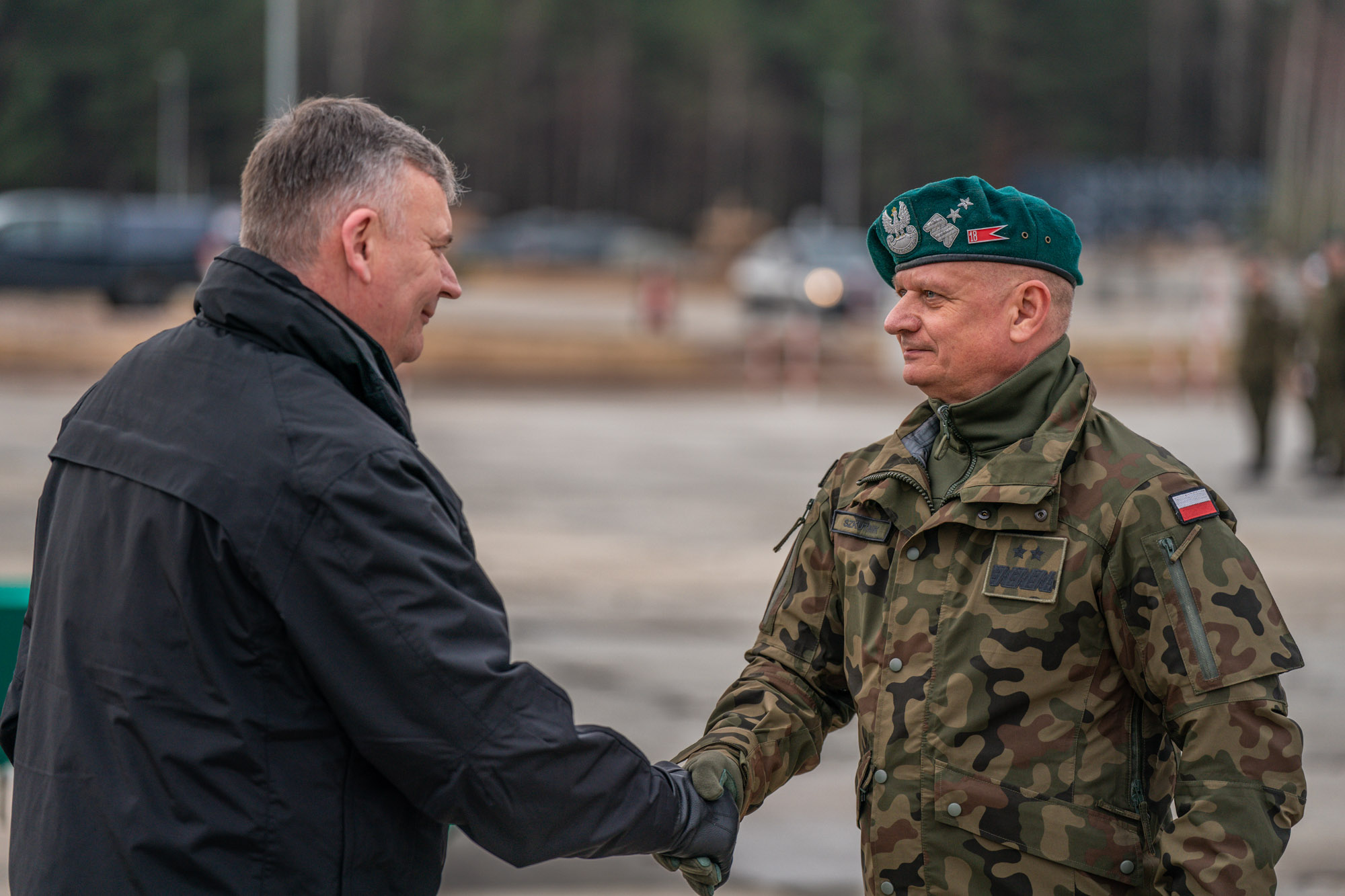- 18 Dywizja Zmechanizowana pod dowództwem generała Szkutnika kończy dziś swoją służbę. Panie generale, serdecznie panu dziękuję. Ta służba nie była łatwa, była pełna wyzwań, ale w pełni przekazuje pan swoją wiedzę i doświadczenie następcy. Jest z nami dowódca 12. Dywizji Zmechanizowanej, generał Koziatek, który przejmuje tę odpowiedzialność, przy wsparciu 11. Dywizji oraz Wojsk Obrony Terytorialnej. Są z nami także żołnierze WOT, którzy służą ramię w ramię z wami. Drodzy żołnierze i funkcjonariusze, życzę wam dobrej służby i żołnierskiego szczęścia, które jest tak bardzo potrzebne. Jesteście wizytówką Sił Zbrojnych Rzeczypospolitej Polskiej. Wasza postawa i służba są dowodem na to, że społeczeństwo zawsze może na was liczyć. Pamiętajcie o tym przy kolejnej zmianie, pełniąc swoją służbę na granicy - zaznaczył wiceminister Paweł Bejda podczas uroczystości zmiany dowodzenia operacji „Bezpieczne Podlasie”.