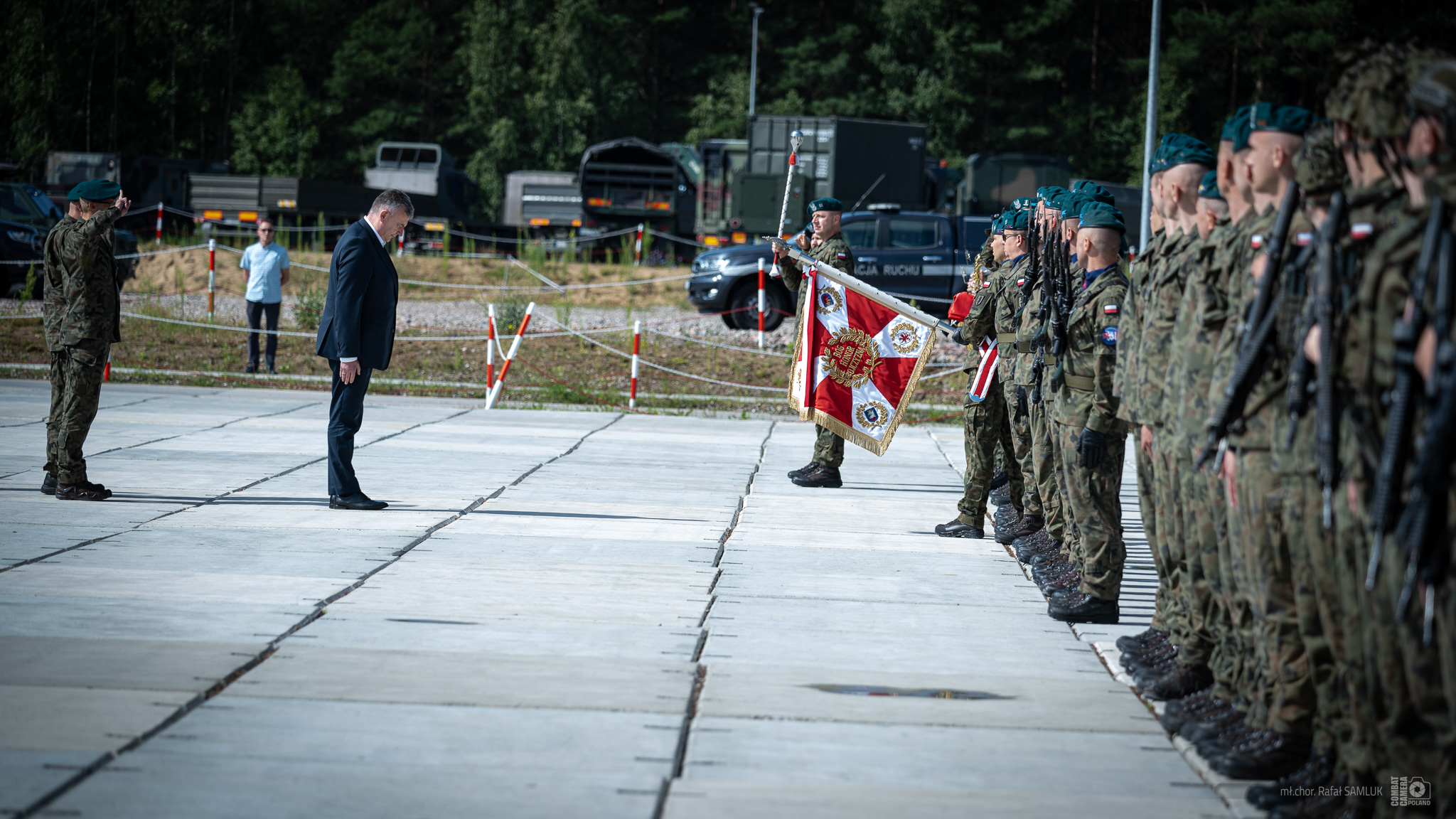 - W imieniu wicepremiera Władysława Kosiniaka-Kamysza chcę wam bardzo serdecznie podziękować za służbę - żołnierzom 12. Dywizji Zmechanizowanej ze Szczecina oraz żołnierzom, którzy obejmują służbę tutaj na granicy, z 16. Dywizji Zmechanizowanej. Chcę bardzo serdecznie podziękować, a jednocześnie życzyć żołnierskiego szczęścia. To dla mnie honor i zaszczyt, że mogę dzisiaj razem z wami wręczać odznaczenia za służbę. Cieszyć się razem z tymi, którzy wracają zdrowi i cali - po wypełnieniu swojej służby - do swoich jednostek. Ale także być z tymi, którzy obejmują służbę - z wielkim honorem i szacunkiem. To wy narażacie swoje życie i zdrowie. Nie szczędzicie krwi i potu, żołnierskiego wysiłku, aby bronić granicy Rzeczypospolitej Polskiej - mówił podczas przekazania obowiązków dowodzenia operacją „Bezpieczne Podlasie” wiceminister Paweł Bejda.