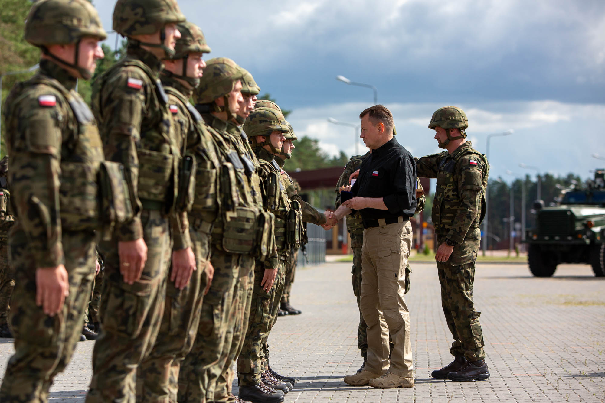 Wojsko Polskie wciąż jest obecne na granicy. Wciąż żołnierze Wojska Polskiego służą wsparciem dla Straży Granicznej. Ale z uwagi na to, że na Białorusi pojawili się wagnerowcy, z uwagi na to, że zagrożenie wciąż wzrasta, oprócz operacji, w której uczestniczą żołnierze ze strażnikami granicznymi, również z zachodu naszego kraju na wschód zostały przerzucone oddziały Wojska Polskiego z 12 i 17 Brygady Zmechanizowanej, których zadaniem jest pokazywanie naszej determinacji w obronie każdego skrawka polskiej ziemi, których zadaniem jest odstraszanie agresora.
