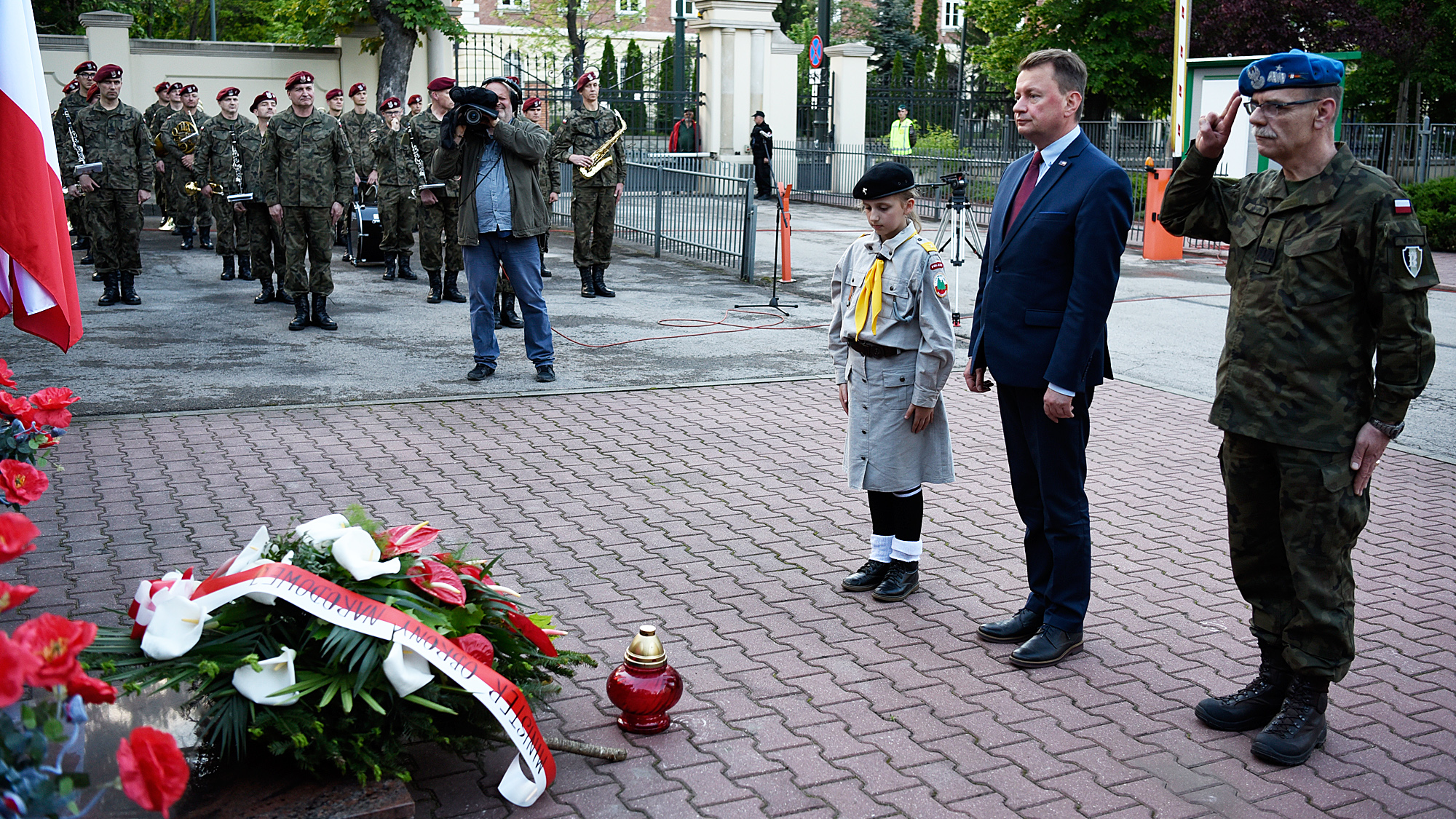 Podczas uroczystości w Krakowie minister Mariusz Błaszczak złożył kwiaty i zapalił znicze przed pomnikiem gen. W. Andersa.