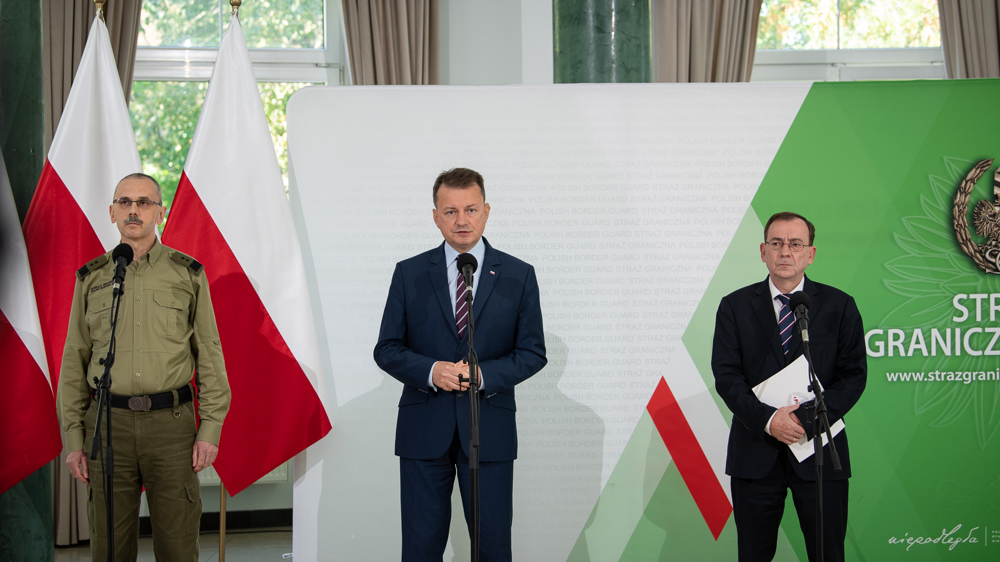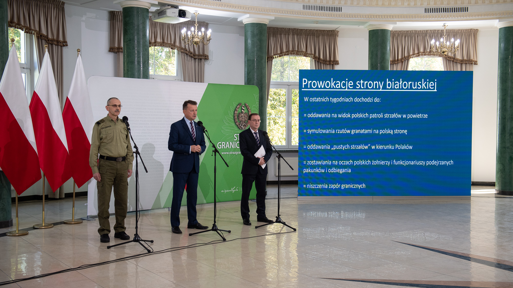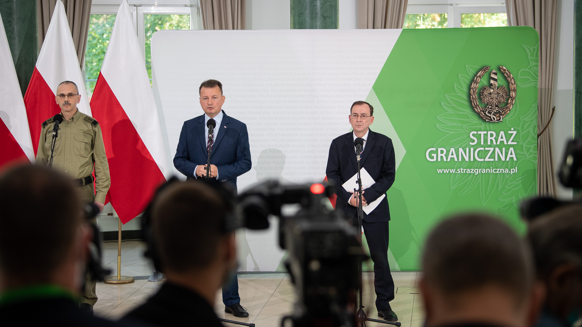 W poniedziałek, 27 września 2021 roku, odbyła się wspólna konferencja prasowa Mariusza Błaszczaka, ministra obrony narodowej, Mariusza Kamińskiego, ministra spraw wewnętrznych i administracji oraz gen. dyw. SG Tomasza Pragi, komendanta głównego Straży Granicznej.