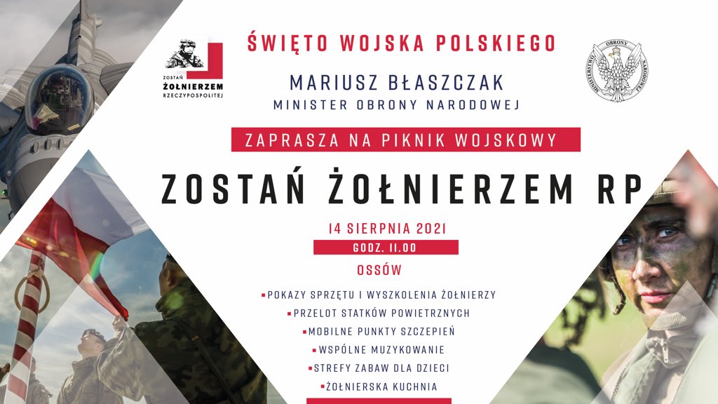 14 i 15 sierpnia, w ramach obchodów święta Wojska Polskiego, na piknikach mogliśmy zobaczyć m.in.: pokazy sprzętu i wyszkolenia żołnierzy, pokazy lotnicze, koncerty orkiestr wojskowych, przewidziano też mobilne punkty szczepień, strefy zabaw dla dzieci i żołnierską kuchnię.