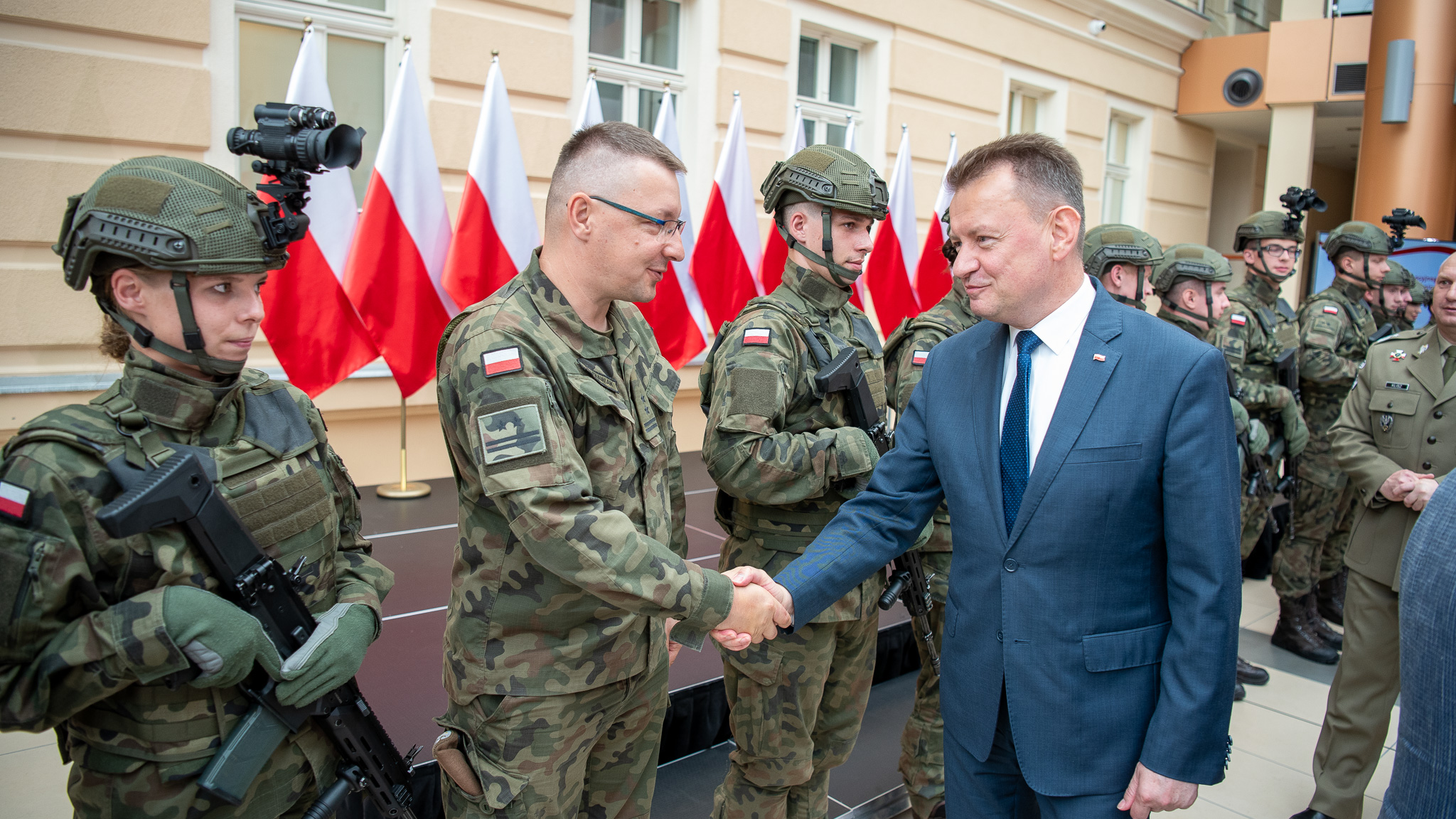 „Obecność wojska jest gwarancją bezpieczeństwa Rzeczypospolitej Polskiej w każdej części naszego kraju. Stąd też nasze wysiłki, razem z dowódcami, żeby rozwijać Wojska Obrony Terytorialnej. Dziś mogę powiedzieć, że Wojska Obrony Terytorialnej liczą już ponad 37 tysięcy żołnierzy. W województwie dolnośląskim są już 3 bataliony. Właśnie rozpoczynamy formowanie 4 batalionu, tu w Legnicy. We współpracy z władzami lokalnymi oraz przedstawicielami Legnickiej Specjalnej Strefy Ekonomicznej ten proces wyraźnie przyśpieszył - powiedział Mariusz Błaszczak, minister obrony narodowej w Legnicy.