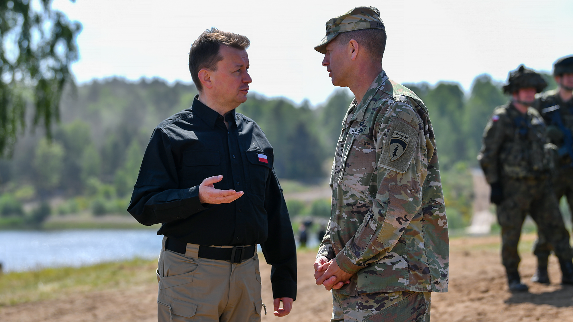 - Przed chwilą mogliśmy podziwiać żołnierzy polskich i amerykańskich, którzy ramię w ramię poodnoszą swoje umiejętności, ćwicząc tu, na poligonie w Drawsku Pomorskim, co jest dowodem bardzo bliskiej współpracy polsko-amerykańskiej - powiedział Mariusz Błaszczak, minister obrony narodowej podczas wizyty na poligonie w Drawsku Pomorskim.